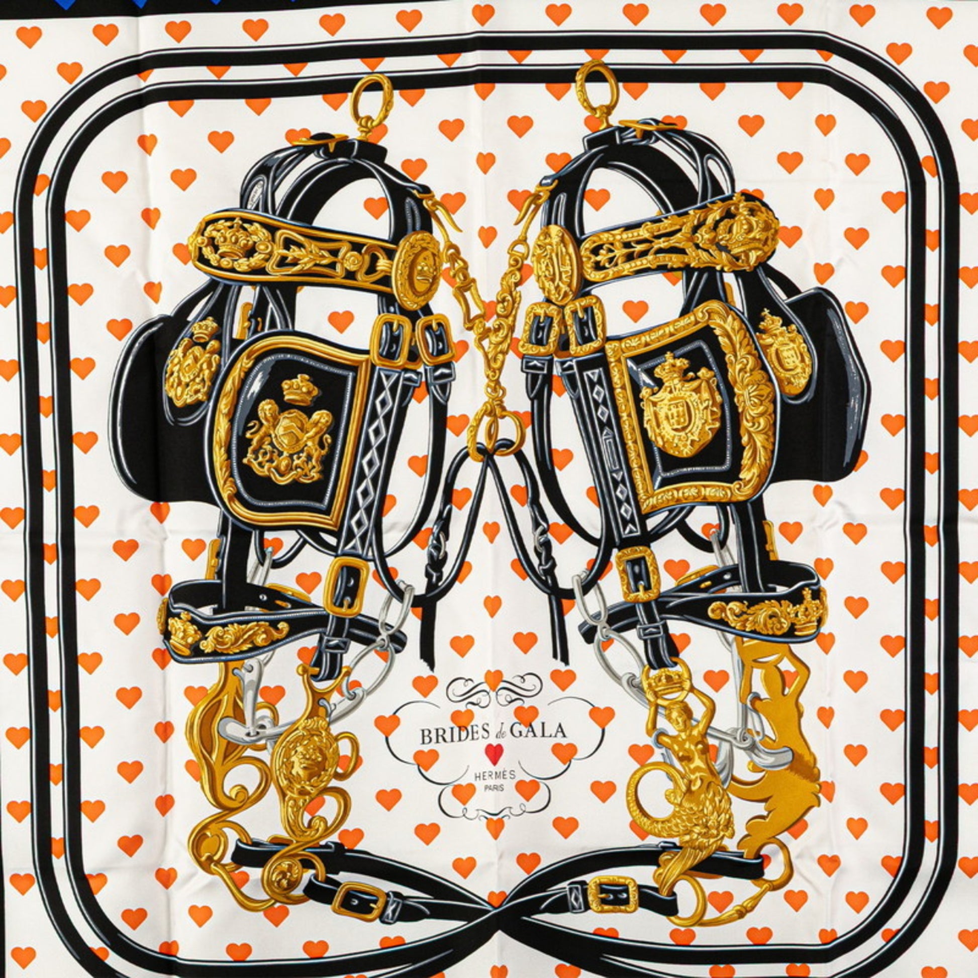 Herms Carr 90 Brides De Gala Love Ceremonial Bridle Scarf Muffler Black Multicolor Silk