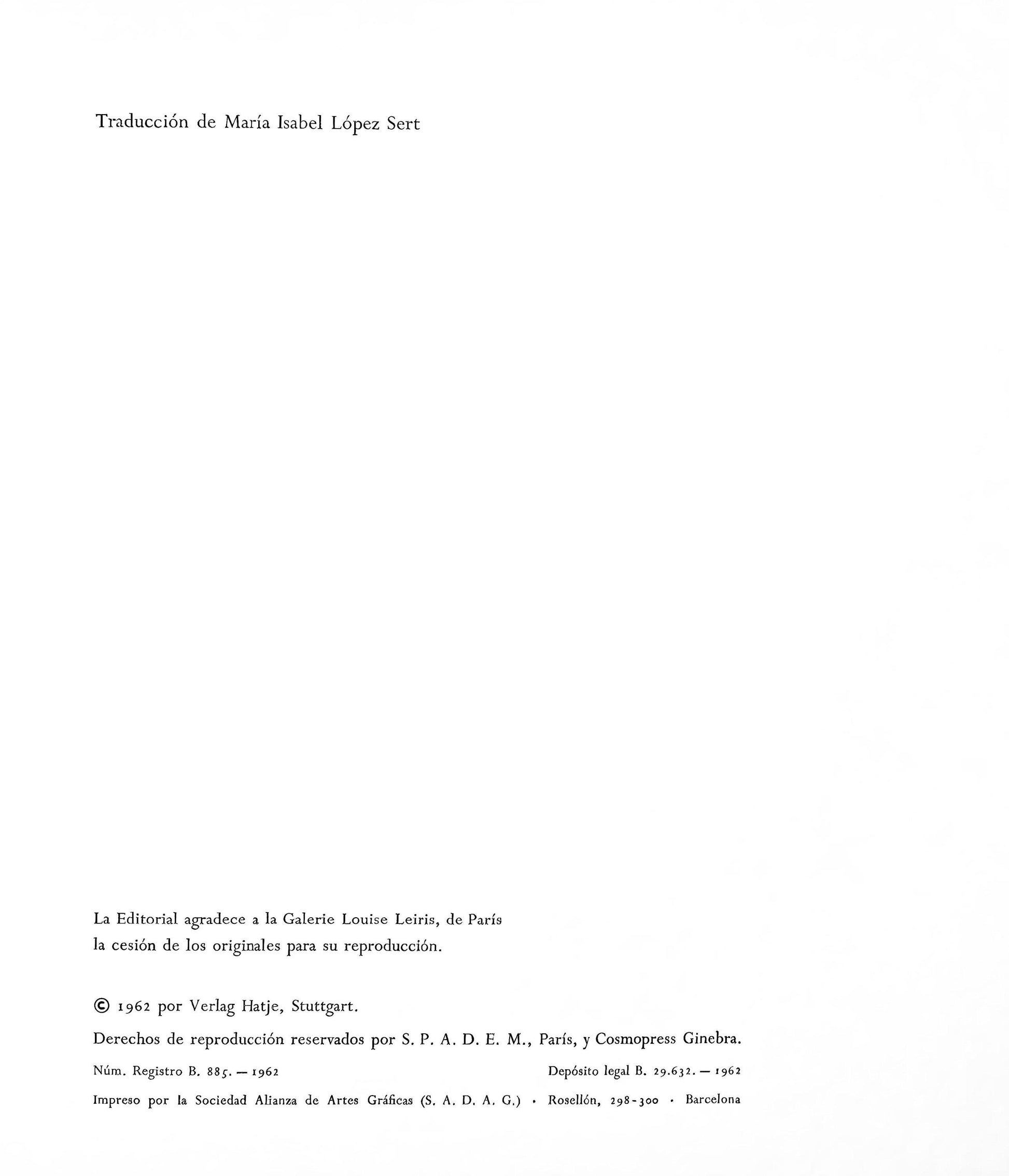 Published by Gustavo Gili, S.A., Barcelona, and France ditions Cercle d'Art, Paris; printed by Verlag Gerd Hatje, Stuttgart, 1962.