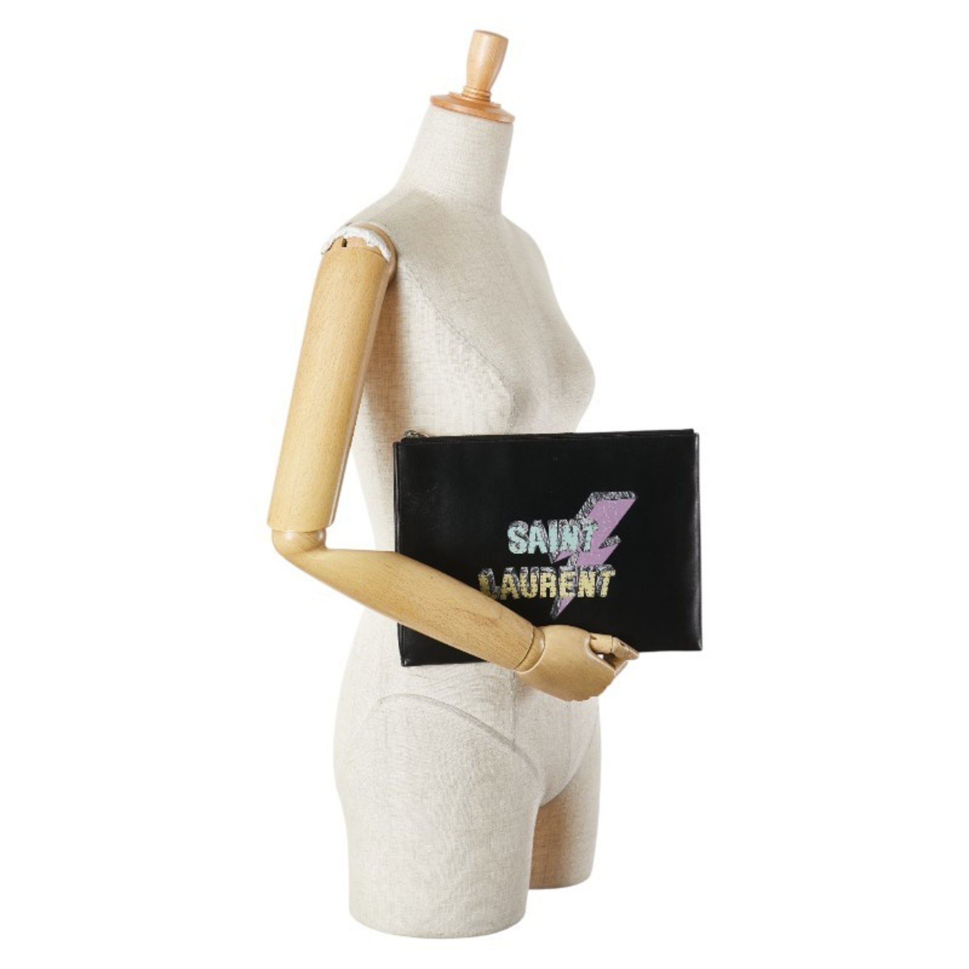 Saint Laurent Logo Print Studded Ipad Tablet Case Clutch Bag In Black