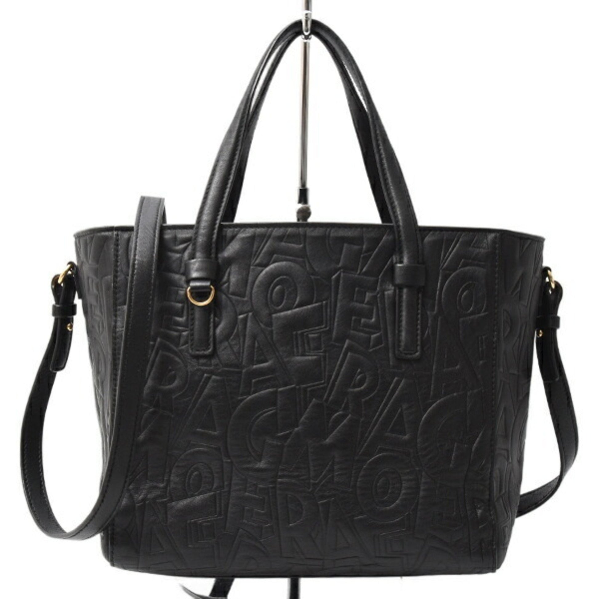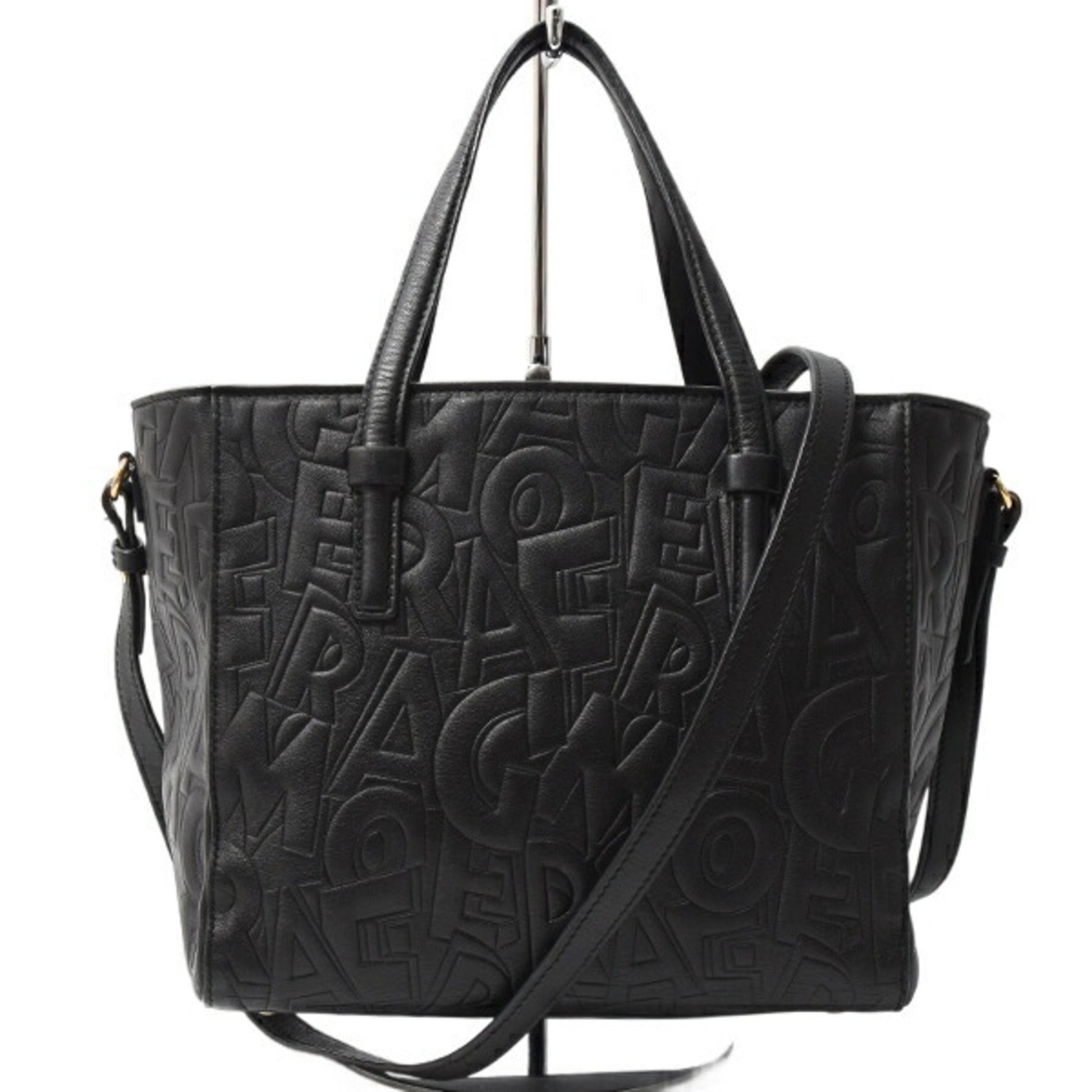 Salvatore Ferragamo Bonnie Shoulder Bag In Black Embossed Calfskin Leather (Re-21F963)