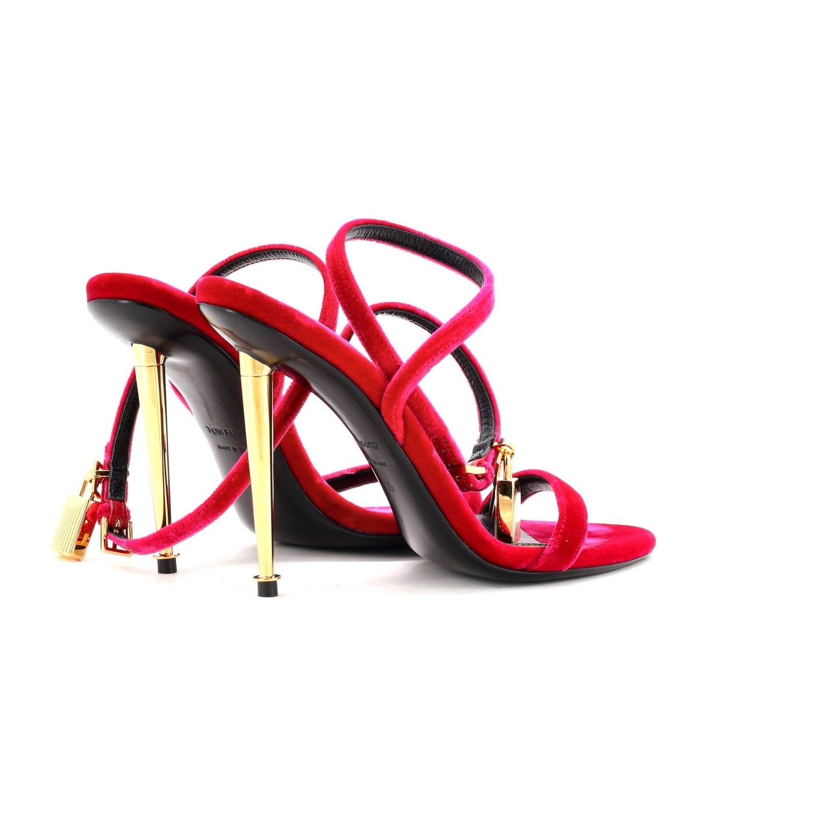 Tom Ford Women'S Padlock Pointy Naked Heeled Sandals Velvet 105