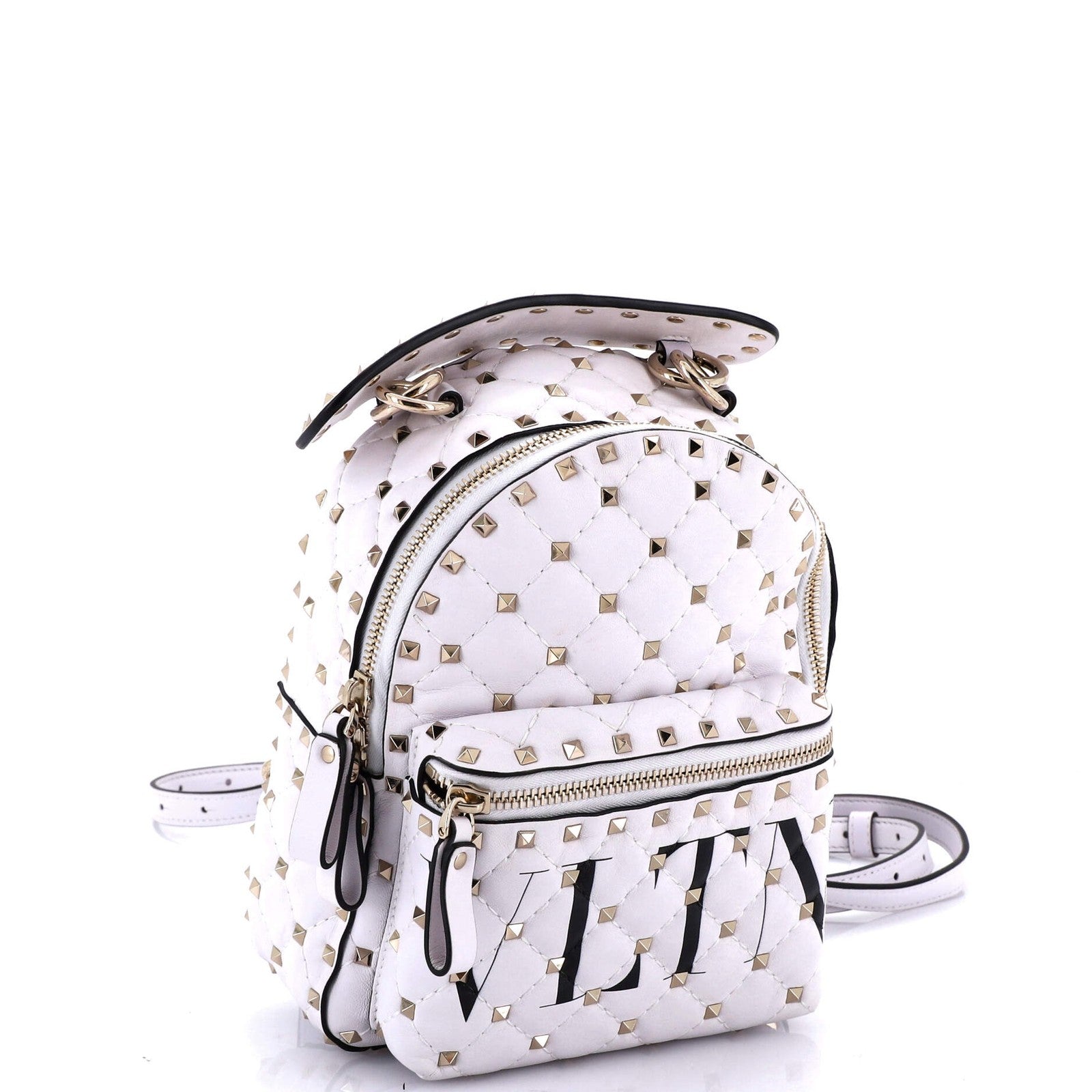 Model: VLTN Rockstud Spike Backpack Quilted Printed Leather Mini