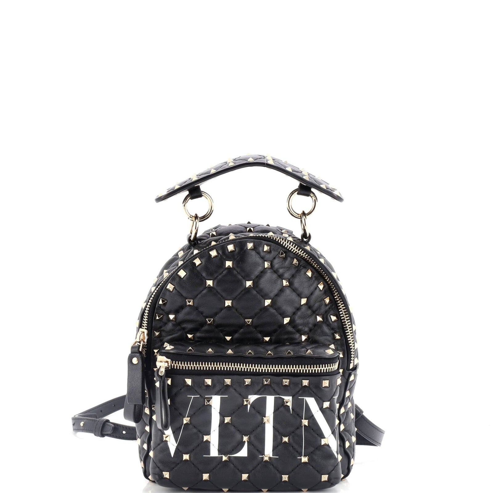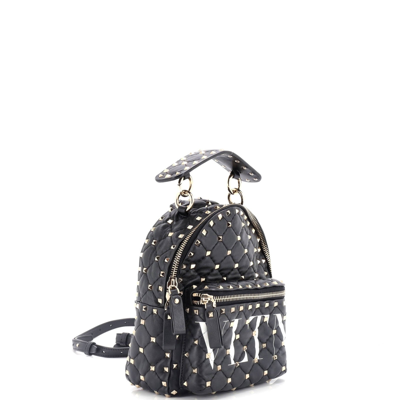 Model: VLTN Rockstud Spike Backpack Quilted Printed Leather Mini