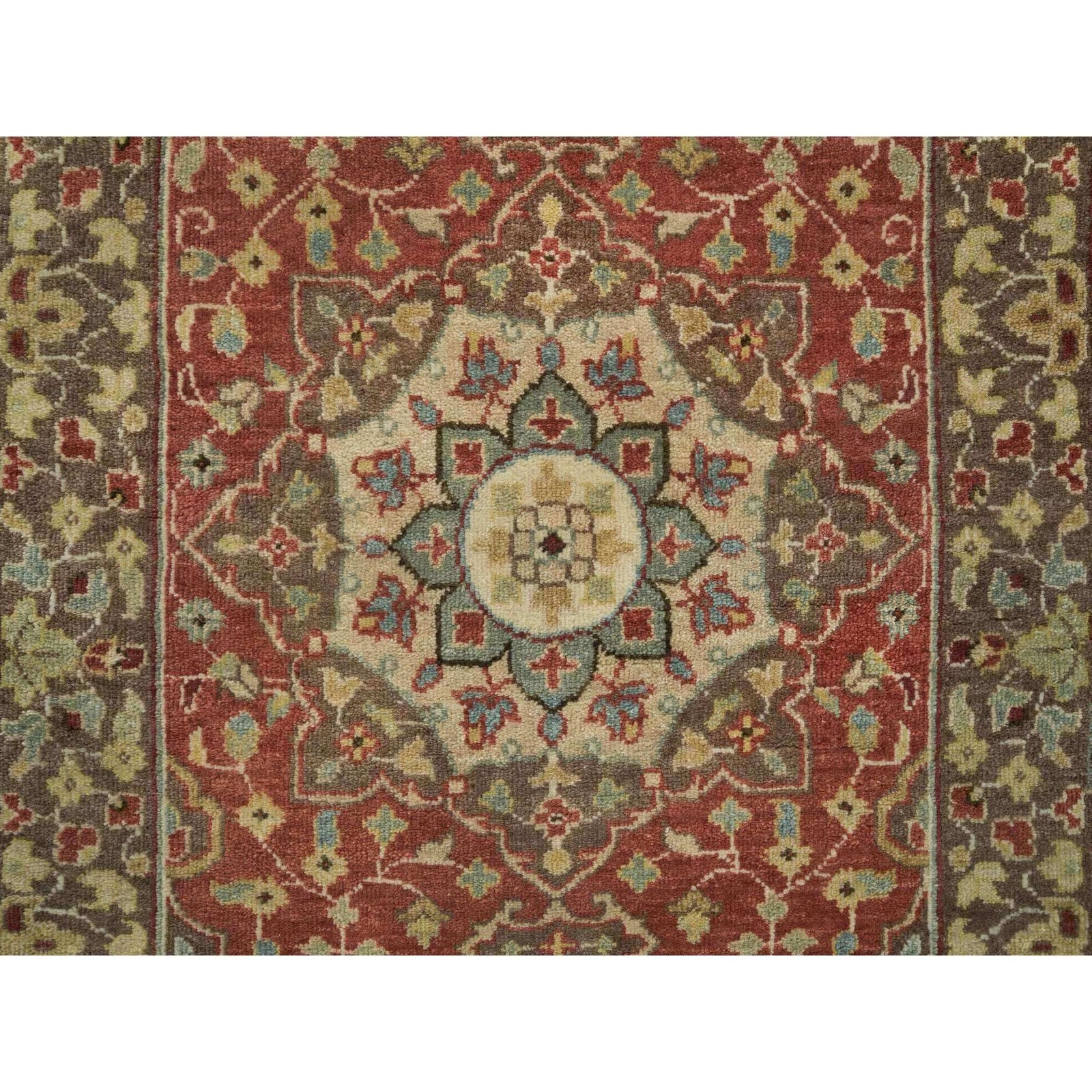 2'6"X8'3" Rust & Brown Antiqued Haji Design Hand Knotted Wool Runner Rug