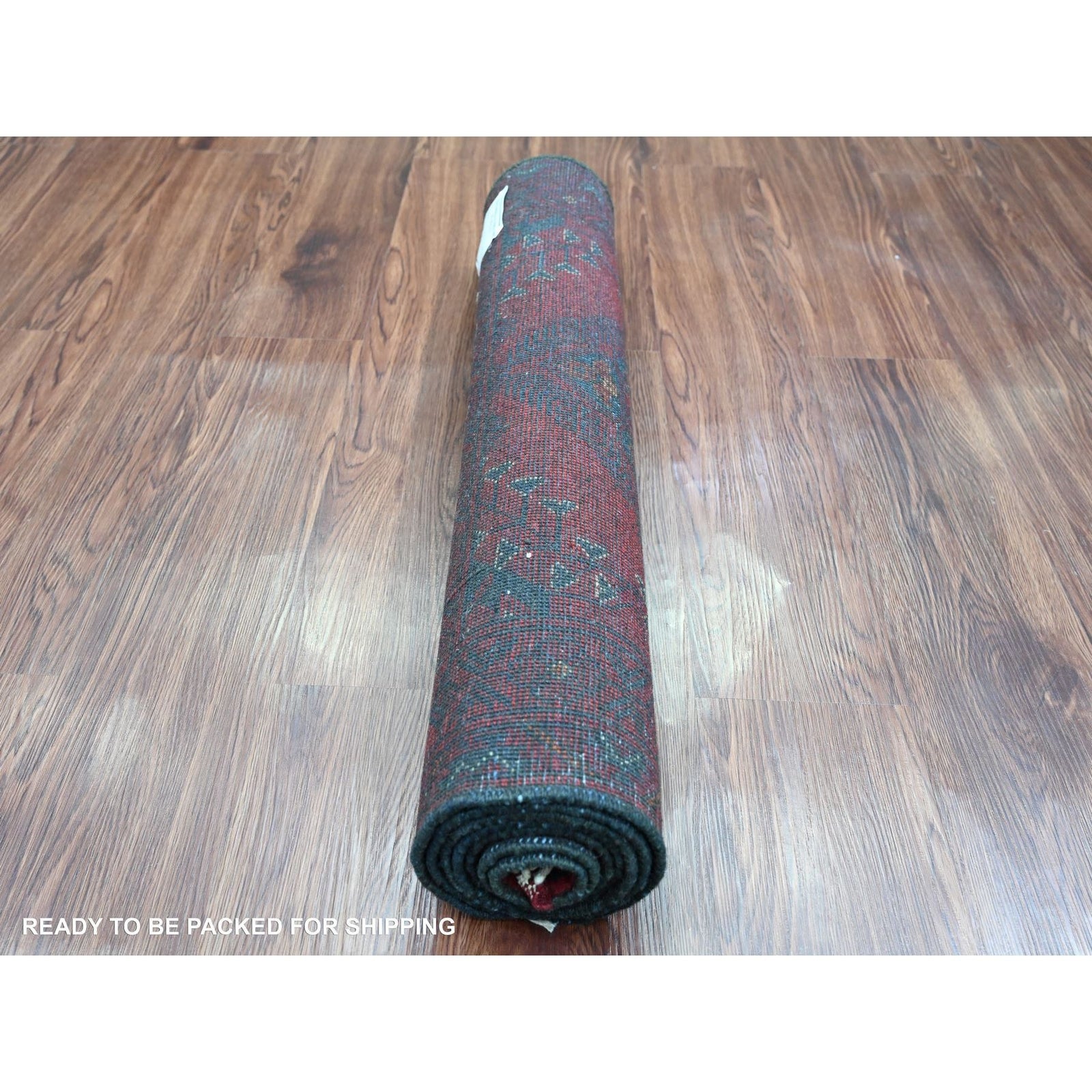 2'7"X6'3" Red All Wool Andkhoy Geometric Pattern, Hand Knotted Runner Rug