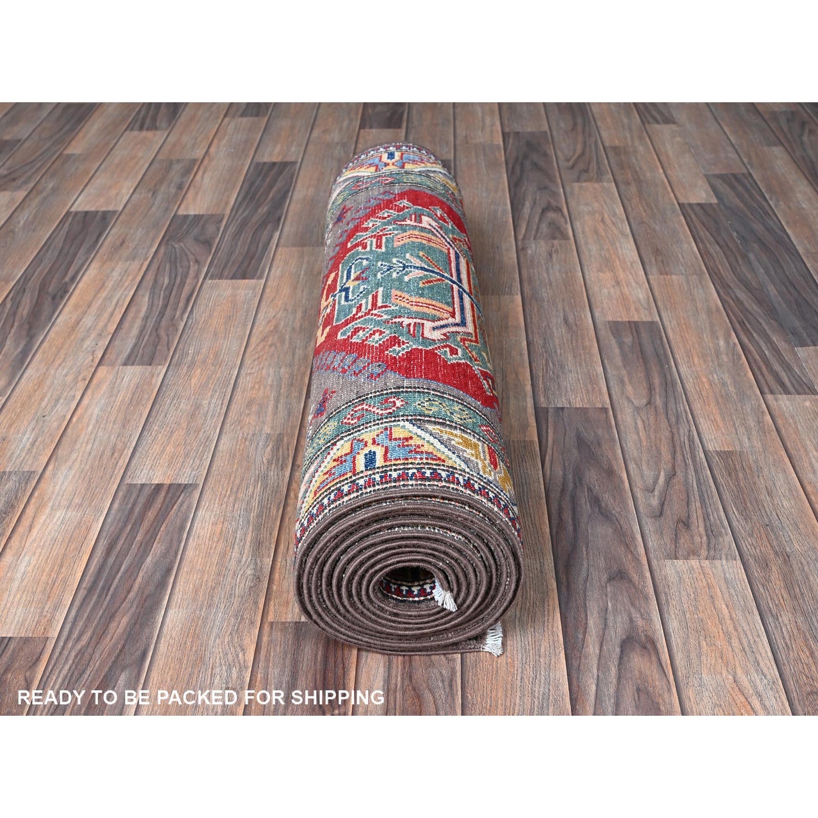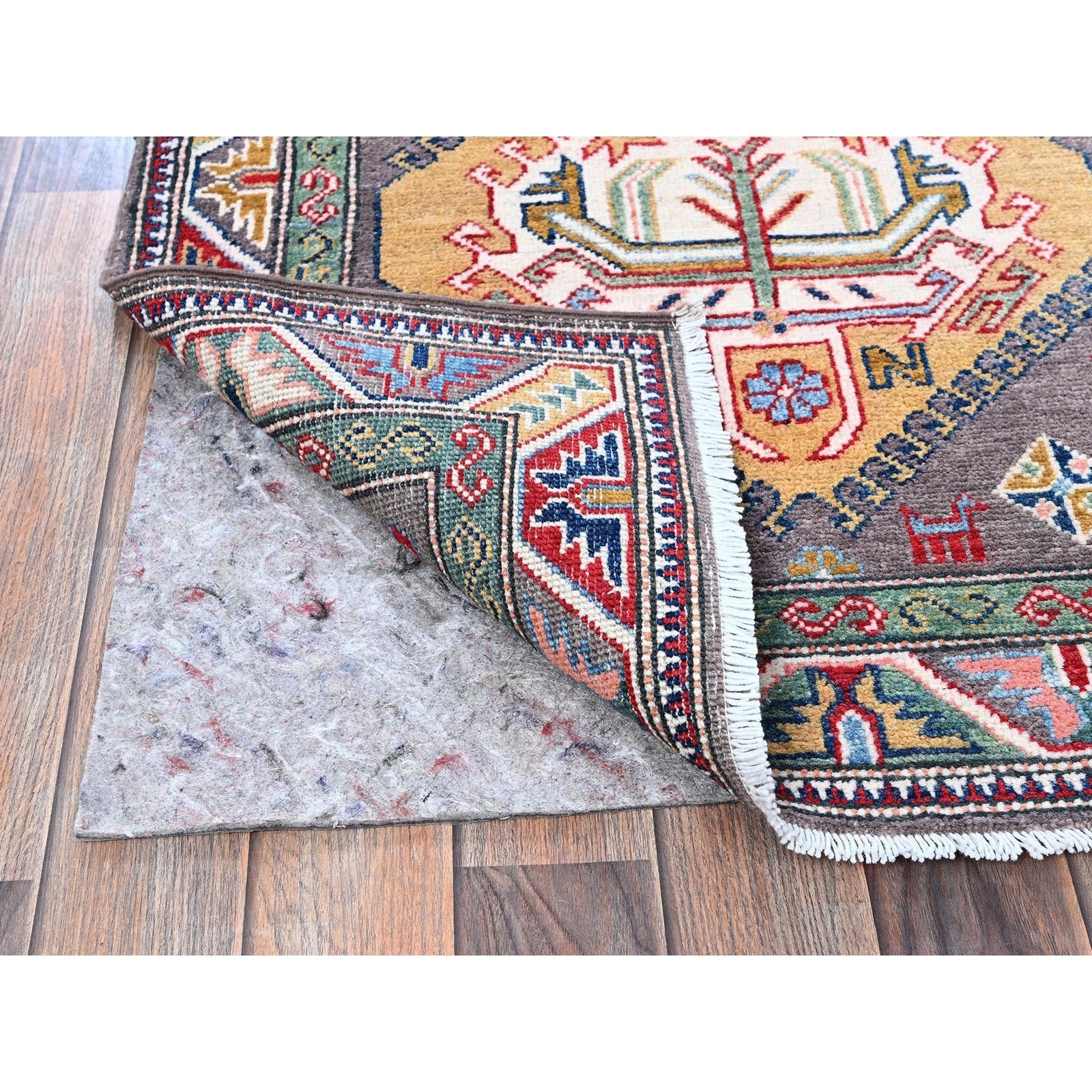 2'8"X12' Gray Kazak Medallions Design Hand Knotted Soft Wool Runner Rug