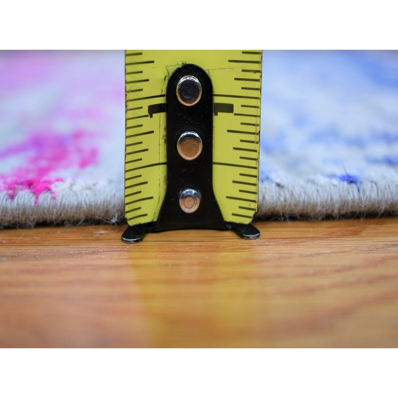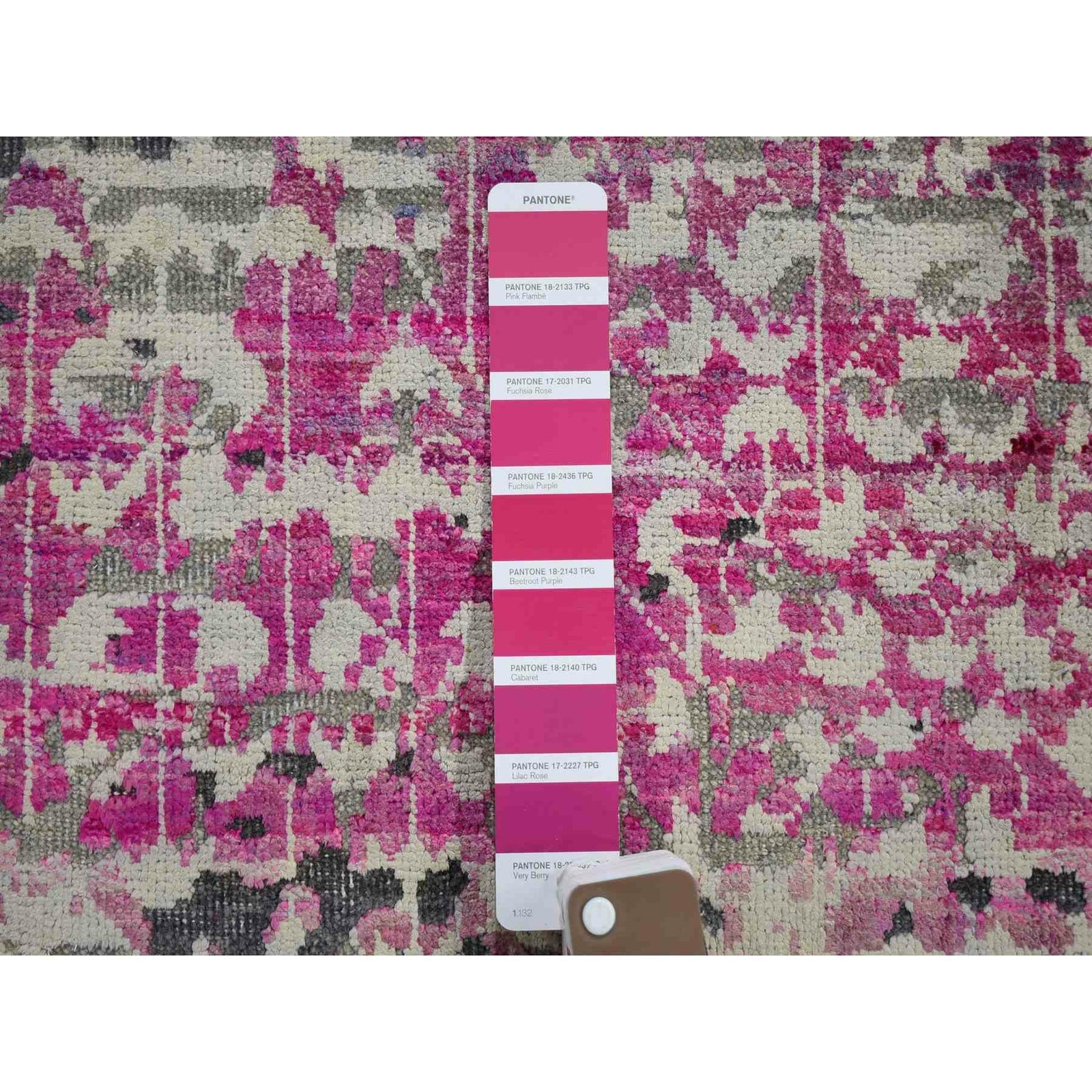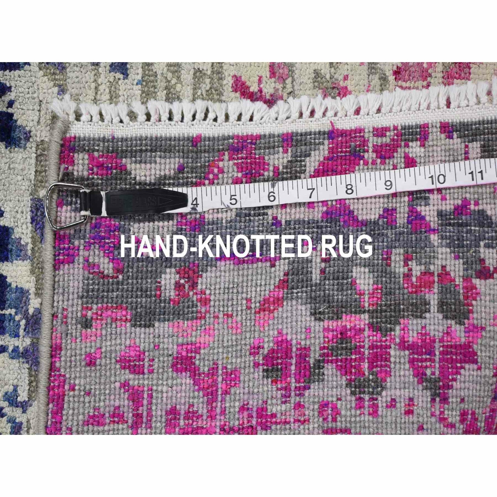 2'X2' Gray Sari Silk With Textured Wool Hand Knotted Oriental Rug