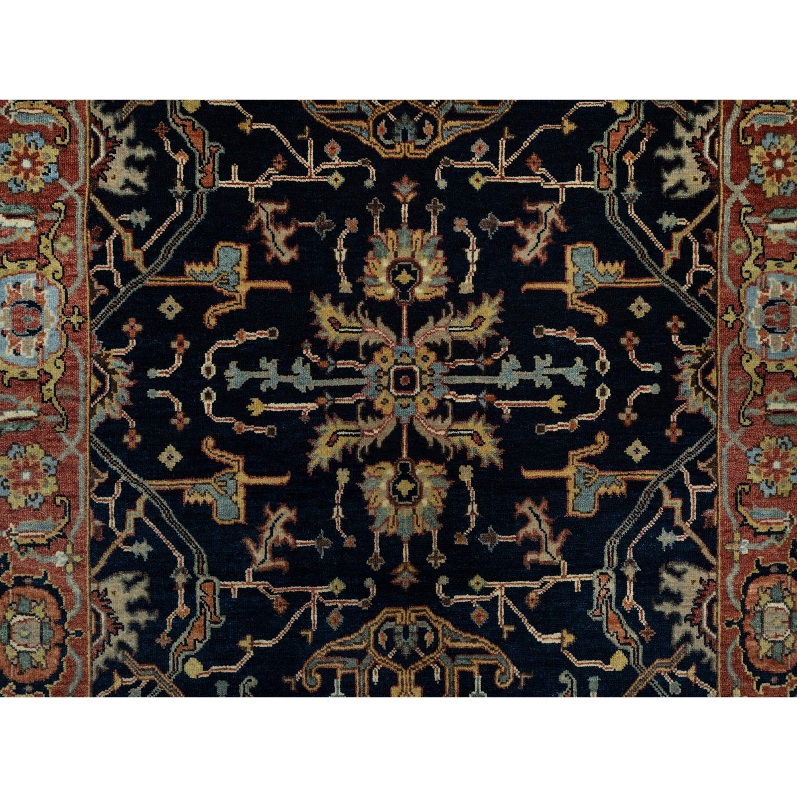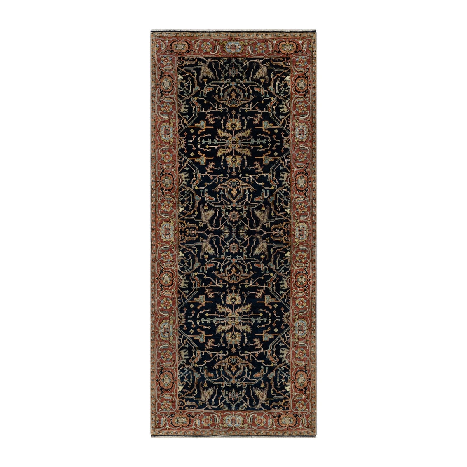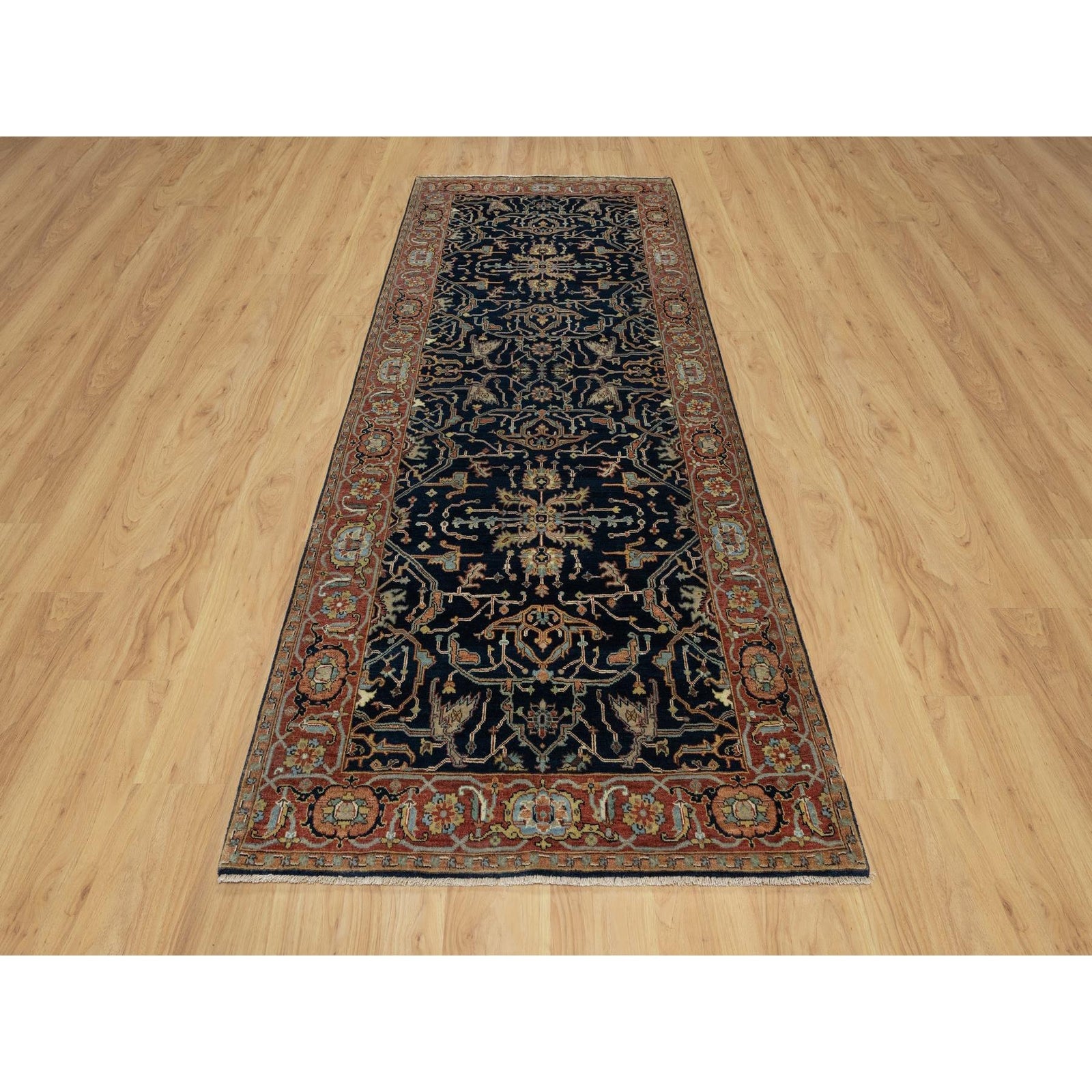 4'2"X10'2" Blue Antiqued Fine Heris Hand Knotted Natural Wool Runner Rug