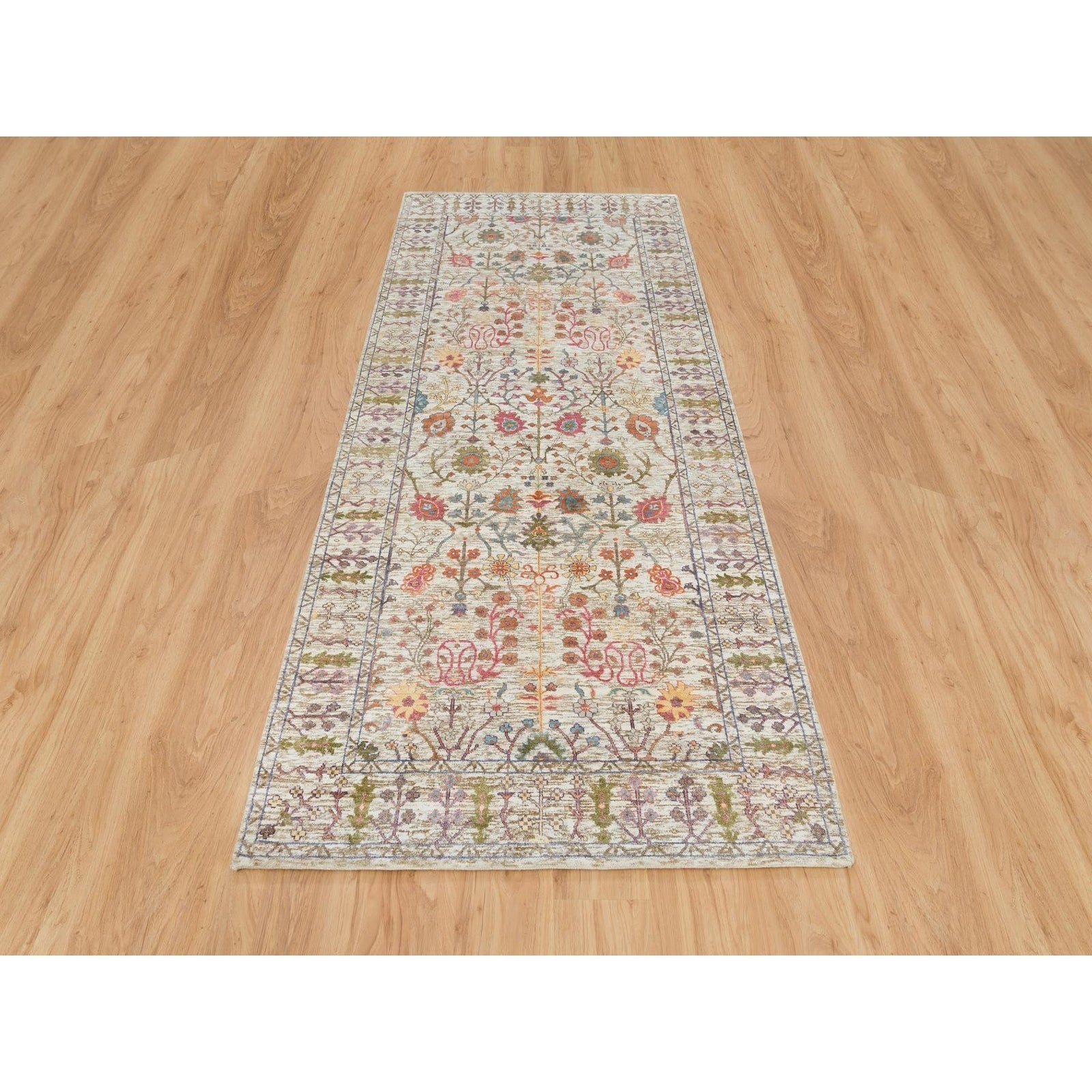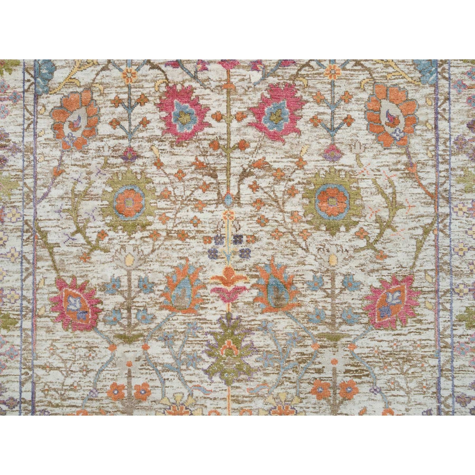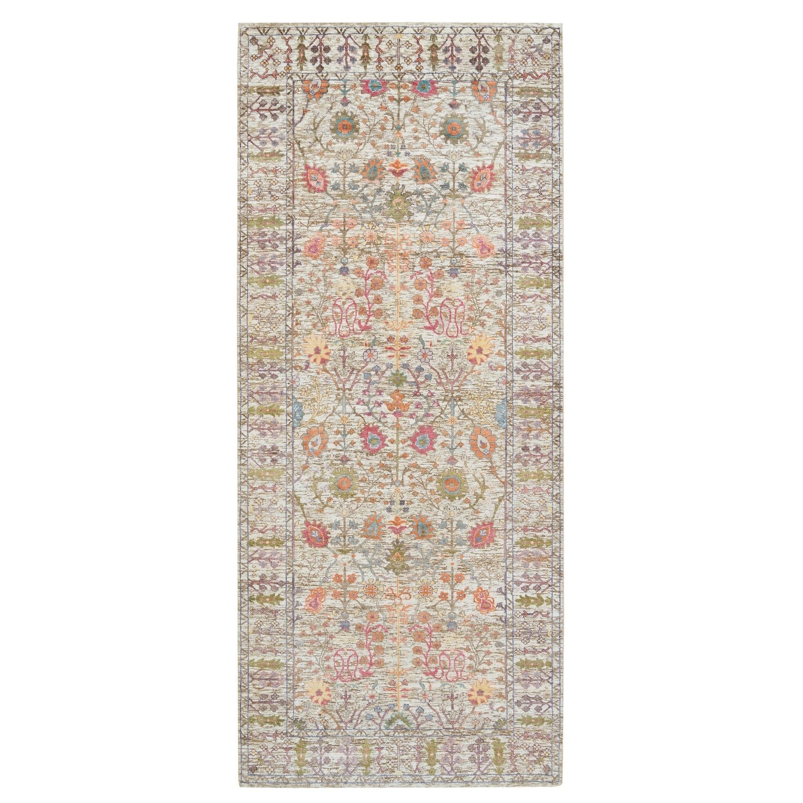 4'3"X10' Taupe Directional Vase Design Silk/Wool Hand Knotted Runner Rug