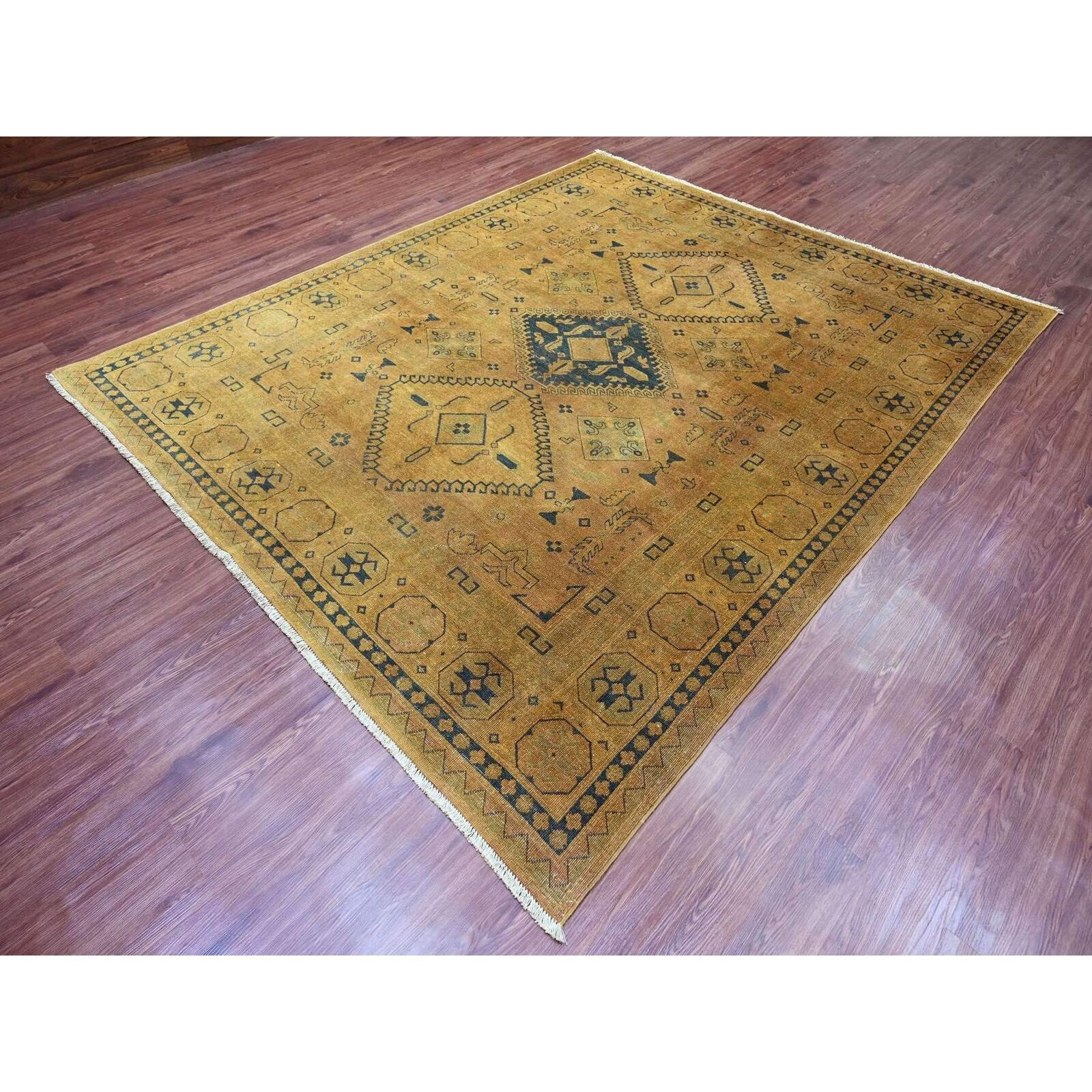 8'X9'5" Brown Overdyed Kazak Medallions Design Hand Knotted 100% Wool Rug