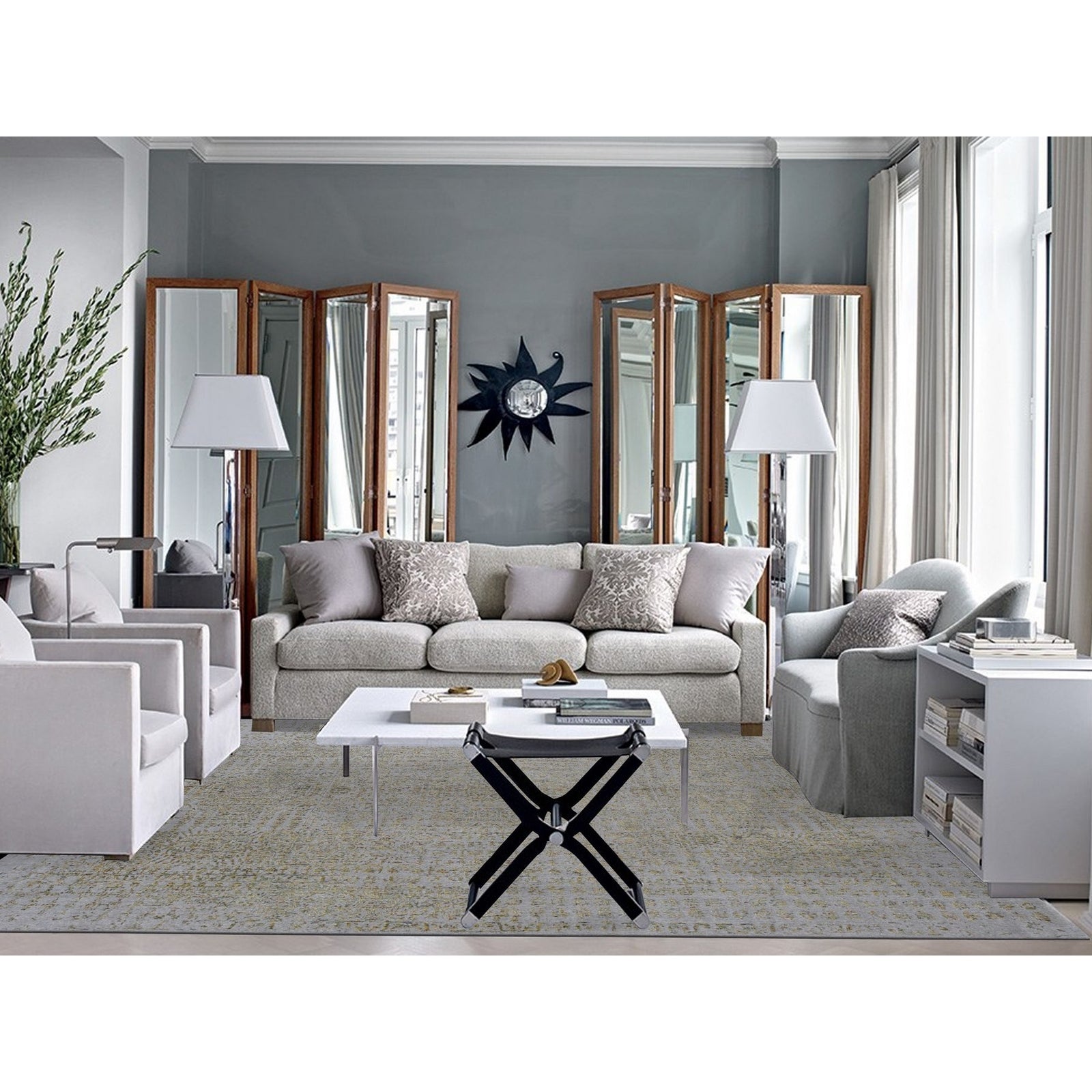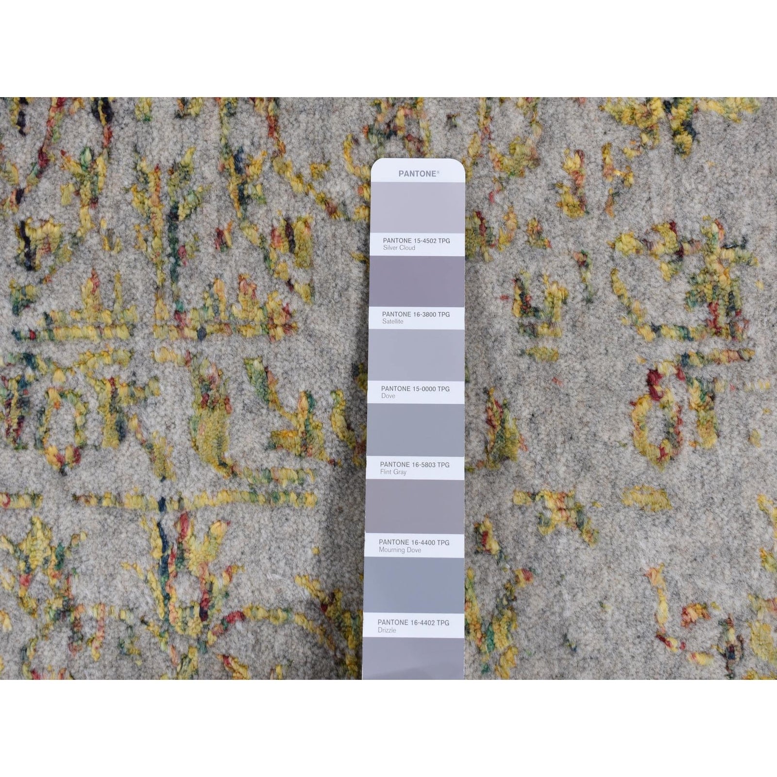 9'10"X14' Silk Gray Broken Mamluk Design Hand Loomed Wool And Silk Rug