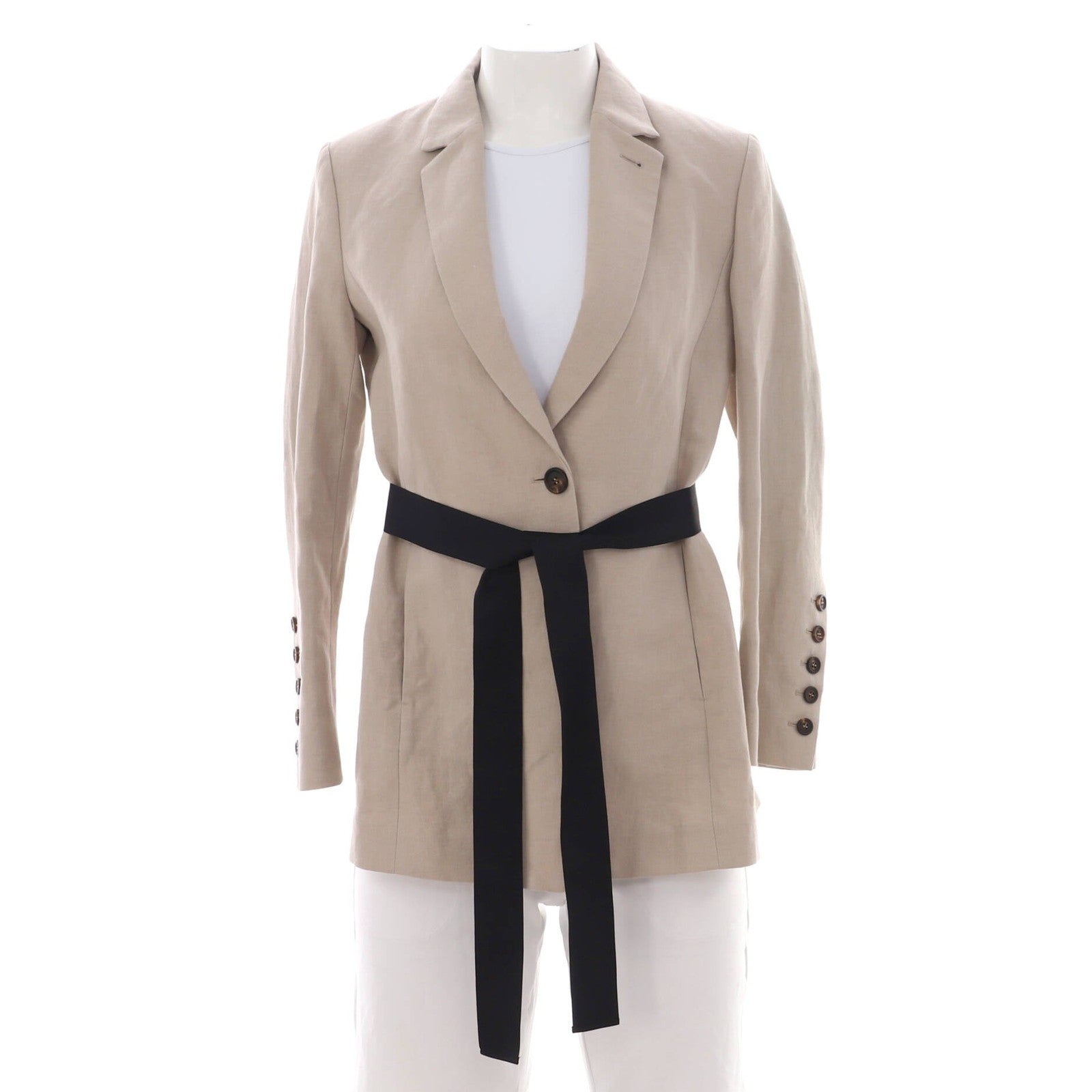 Model: Women's Single Button Belted Blazer Linen and Cotton Blend