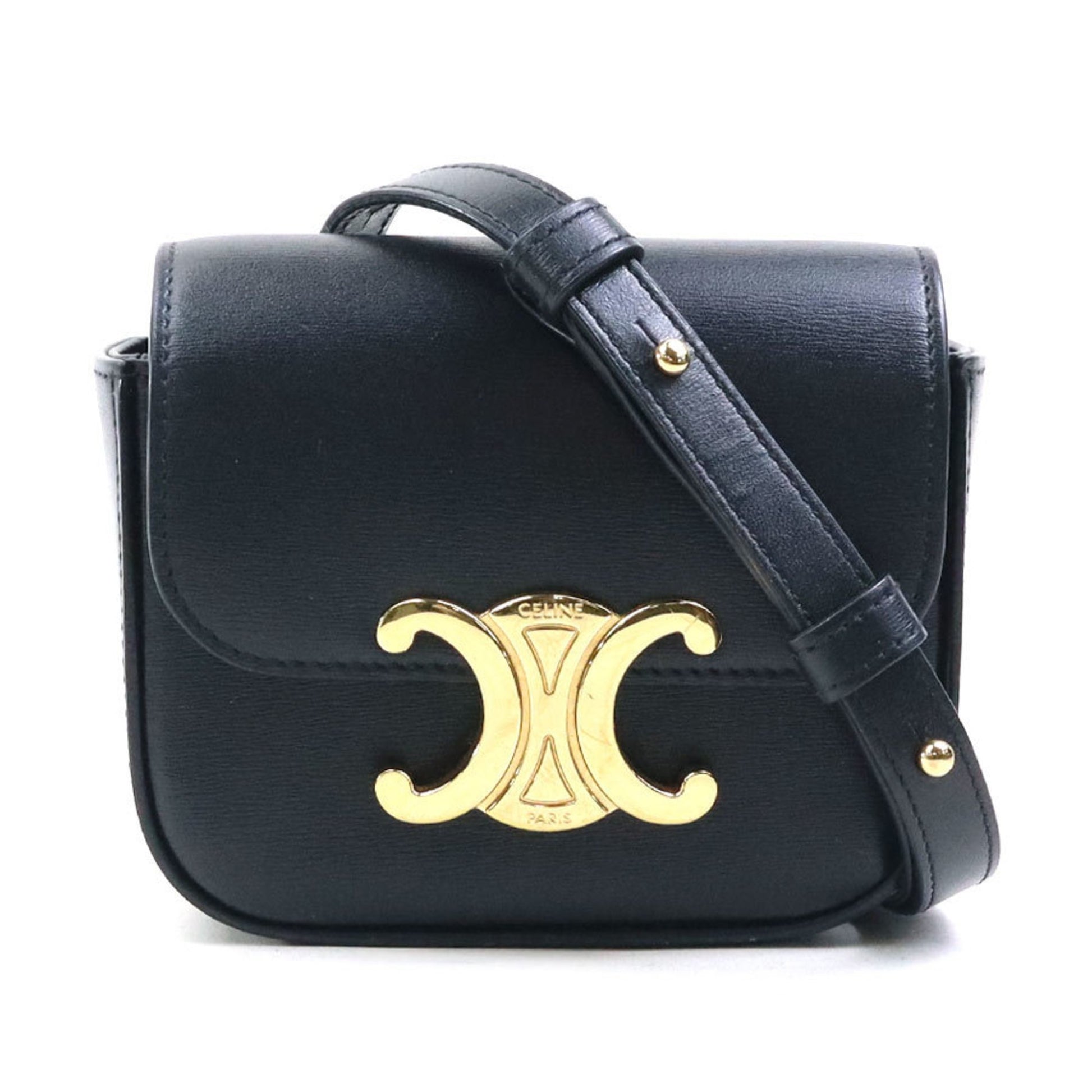 Celine Triomphe Mini Claude Shoulder Bag In Black Leather