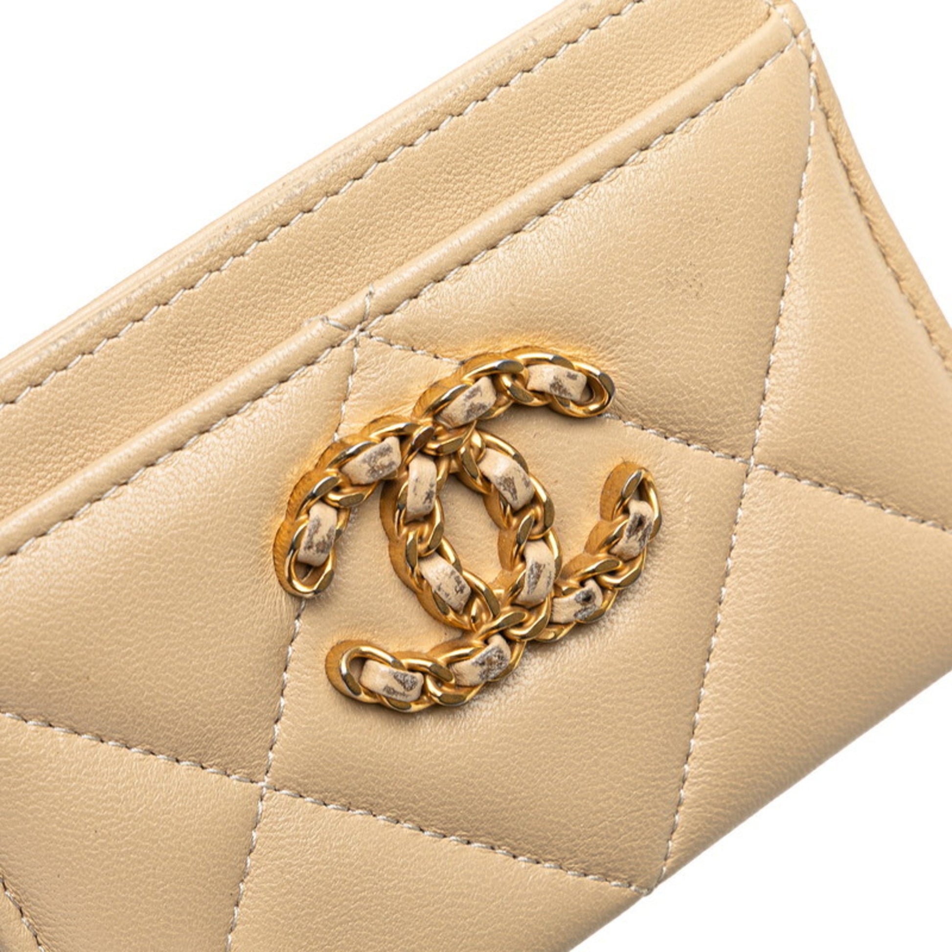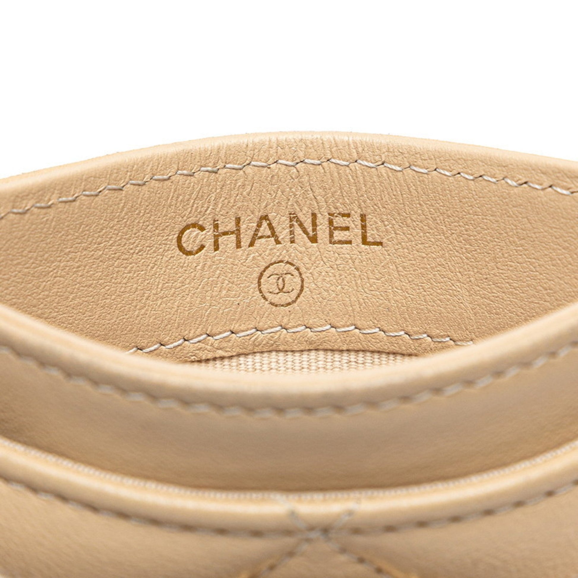 Chanel Coco Mark Matelasse Business Card Case/Card Case/Pass Case Beige Lambskin