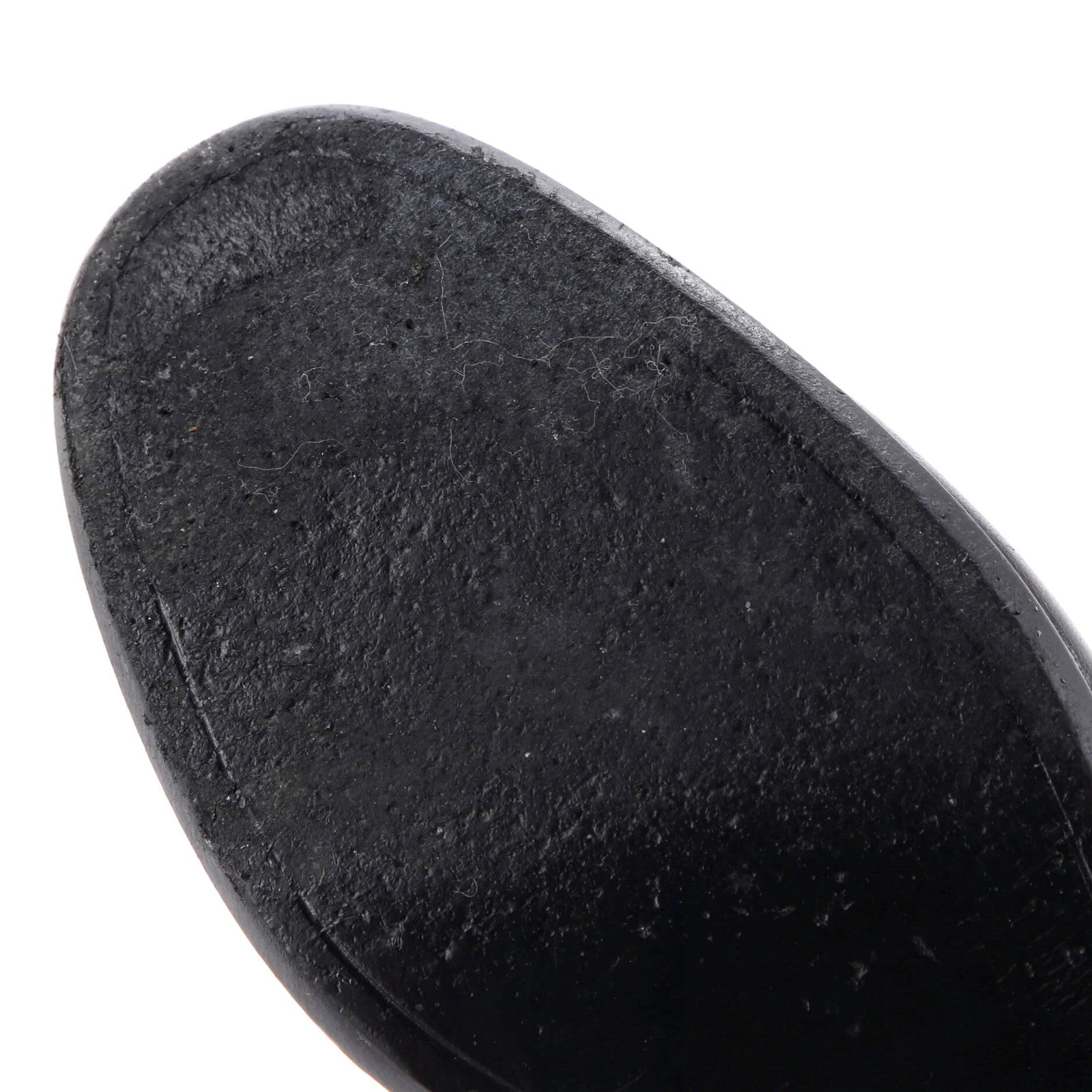 Condition: Very good. Minor odor in interior. Creasing throughout, darkening and marks in interior, peeling, discoloration, scuffs, and indentations on outer soles, scratches on hardware.