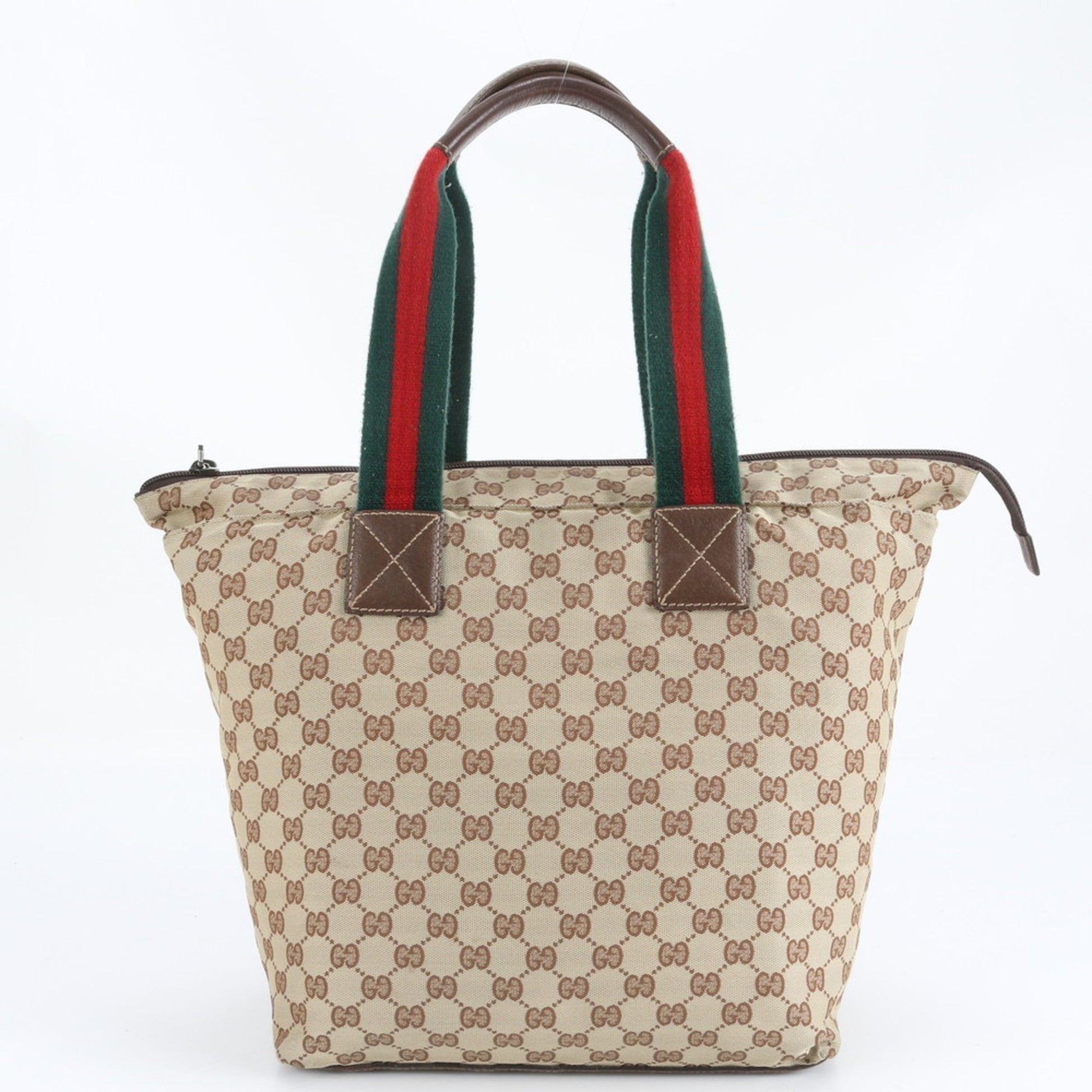 Gucci Gg Canvas Sherry Line Leather Tote Bag
