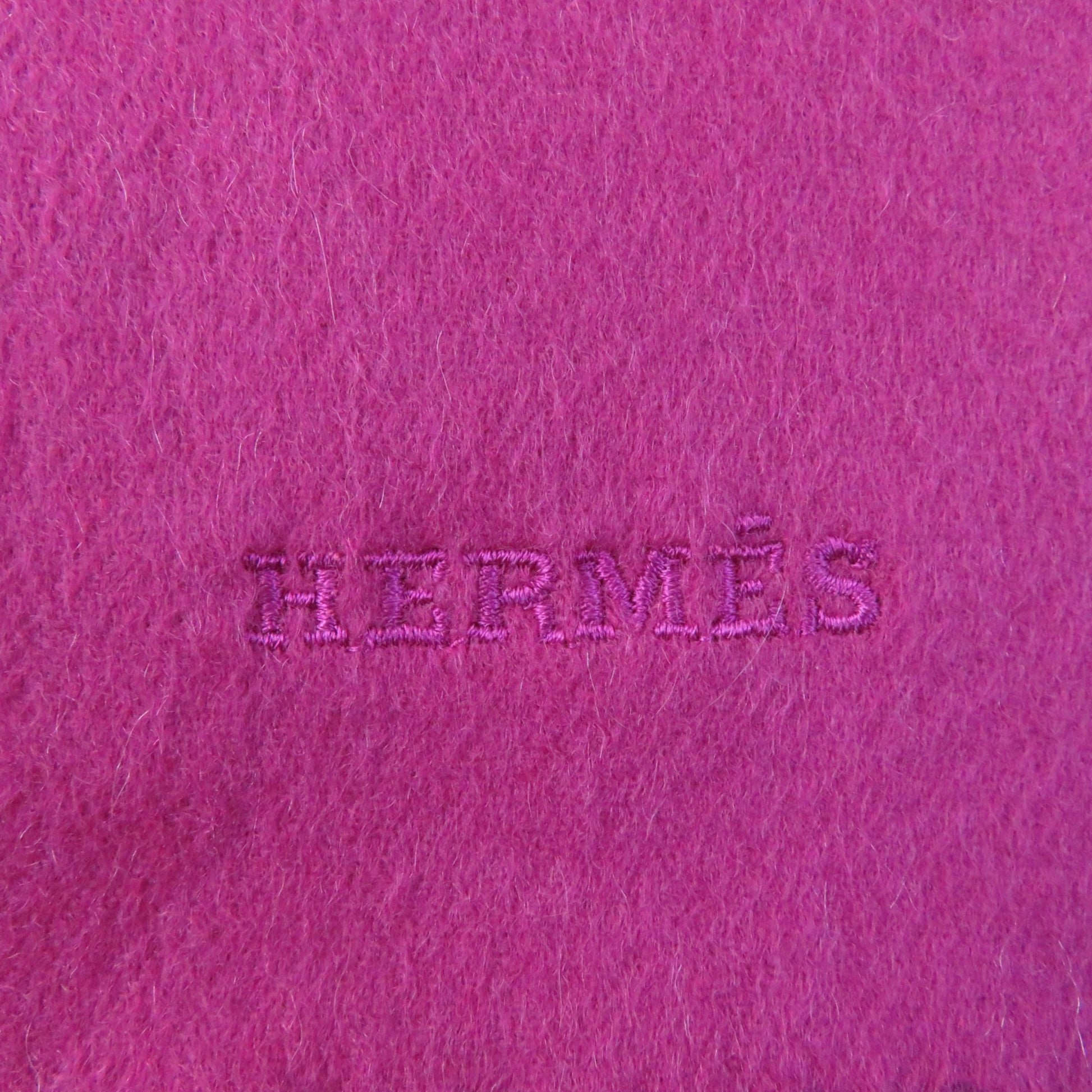 Hermes 100% Cashmere Scarf With Embroidered Logo And Fringe