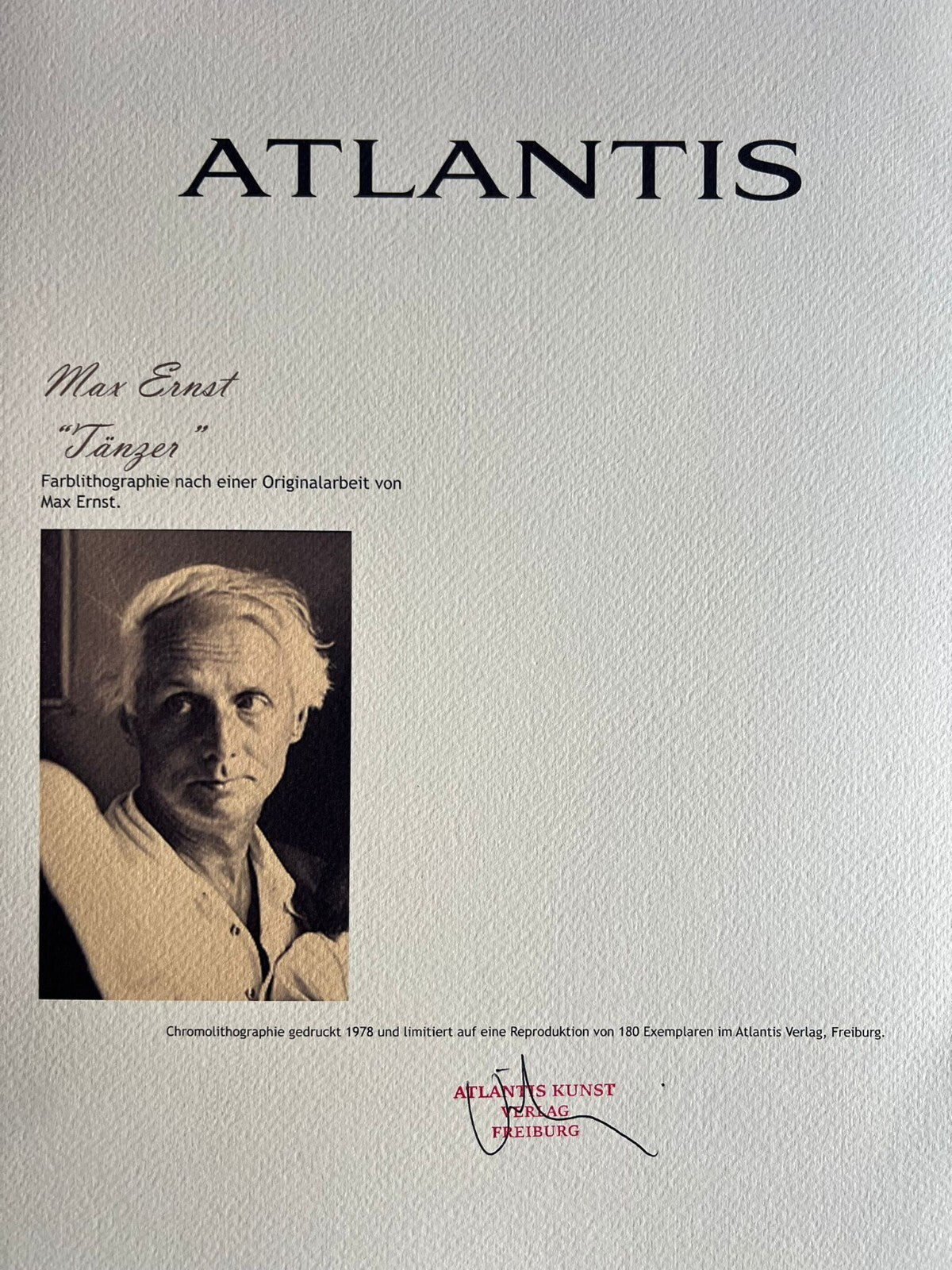 Chromolithography printed in 1978 in 180 specimens by Atlantis Verlag, Freiburg