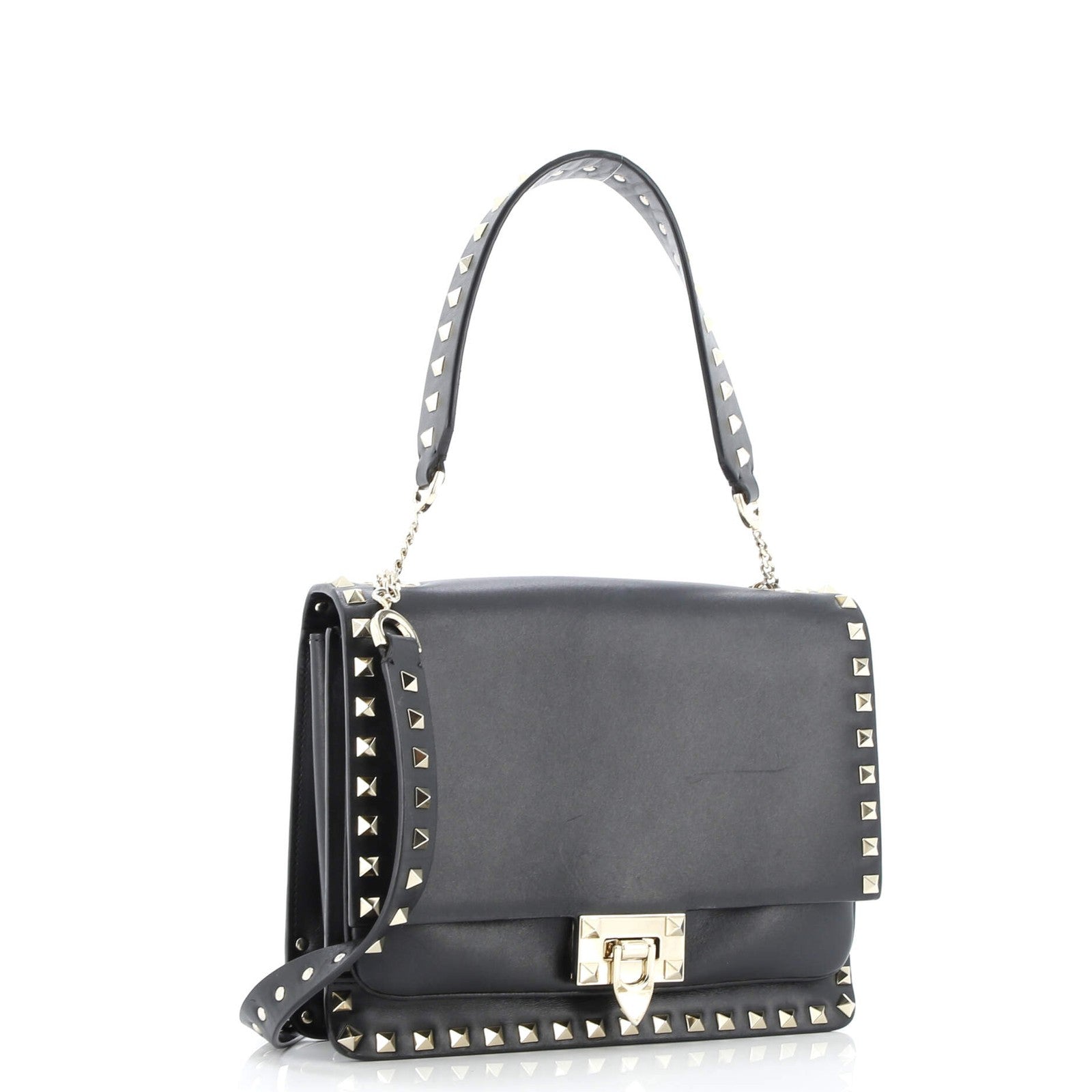 Valentino Garavani Rockstud Flip Lock Flap Top Handle Bag Leather Small