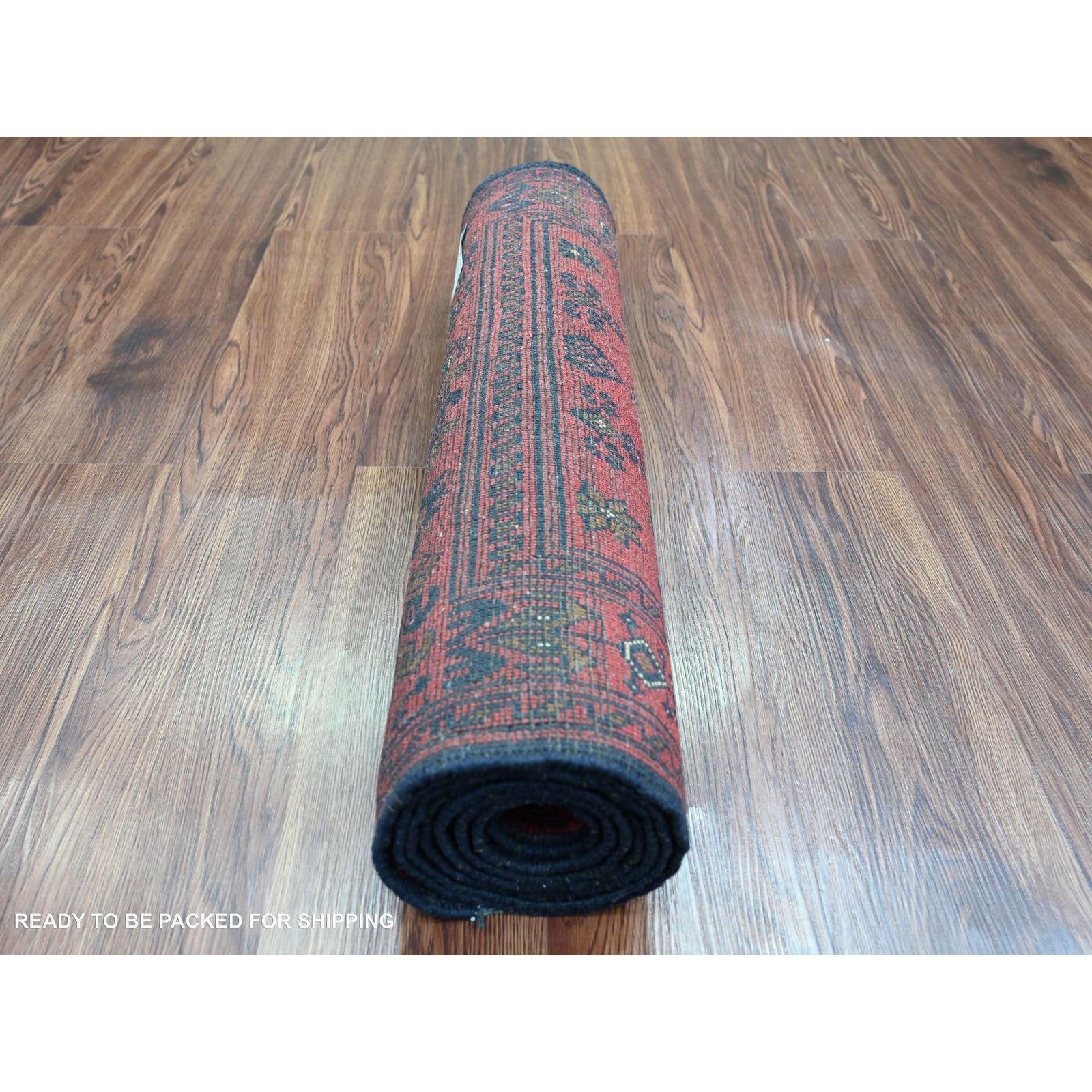 2'4"X7'9" Red Andkhoy Medallion Design 100% Wool Hand Knotted Runner Rug