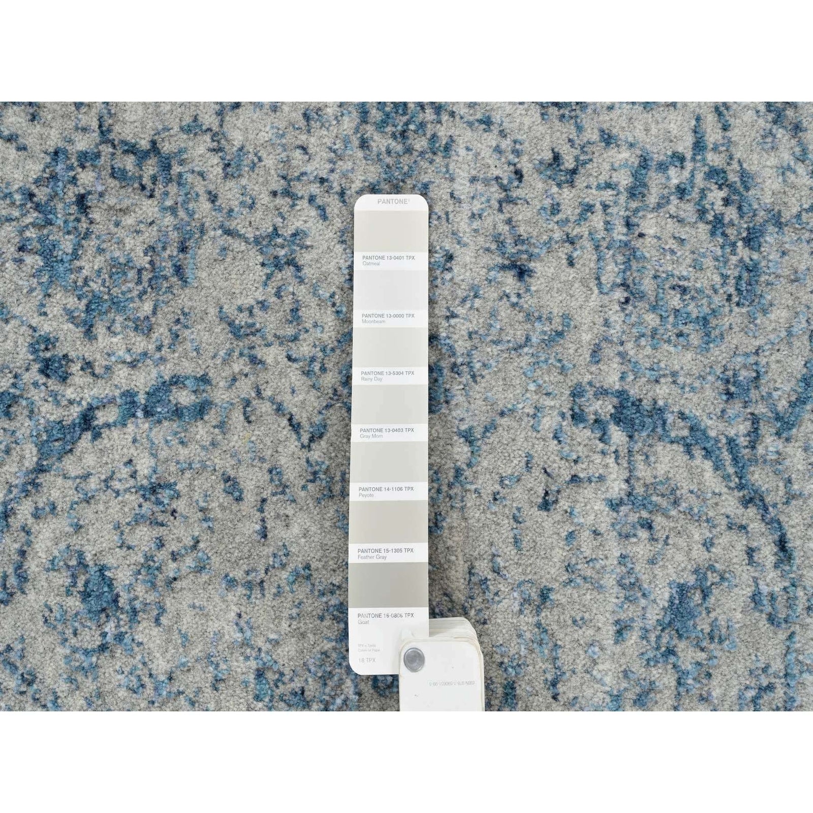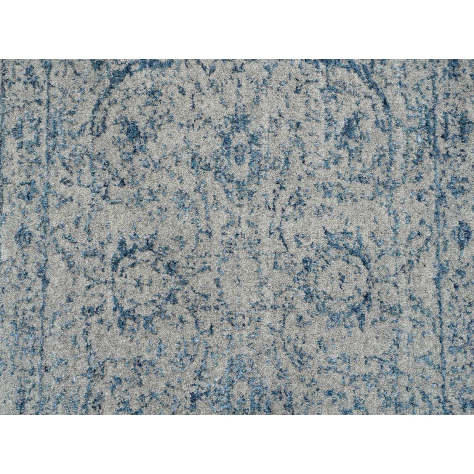 2'6"X8'1" Hand Loomed Gray Fine Jacquard Wool And Silk Runner Rug