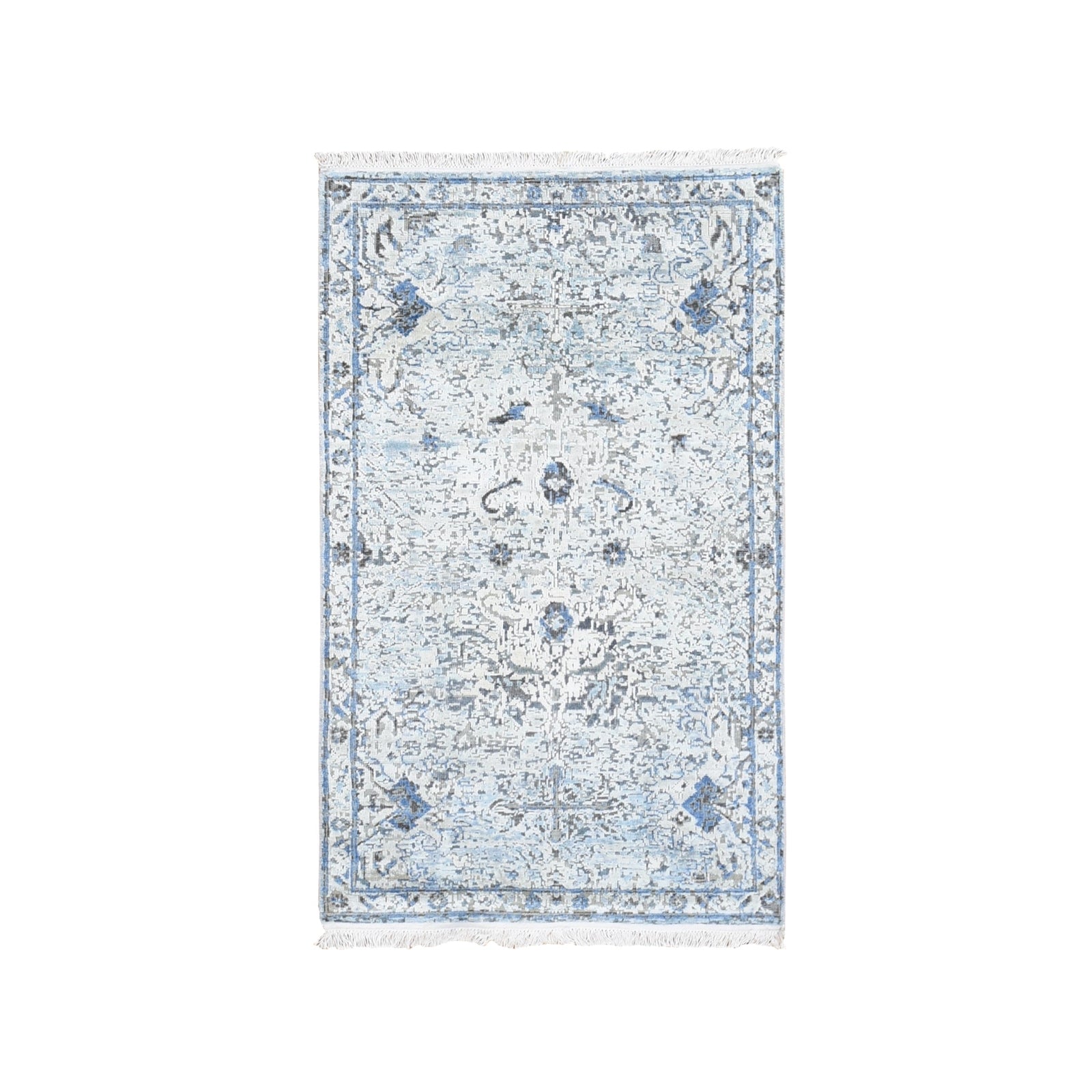 3'X5' Ivory Distressed Oushak Pure Silk With Text Wool Hand Knotted Rug