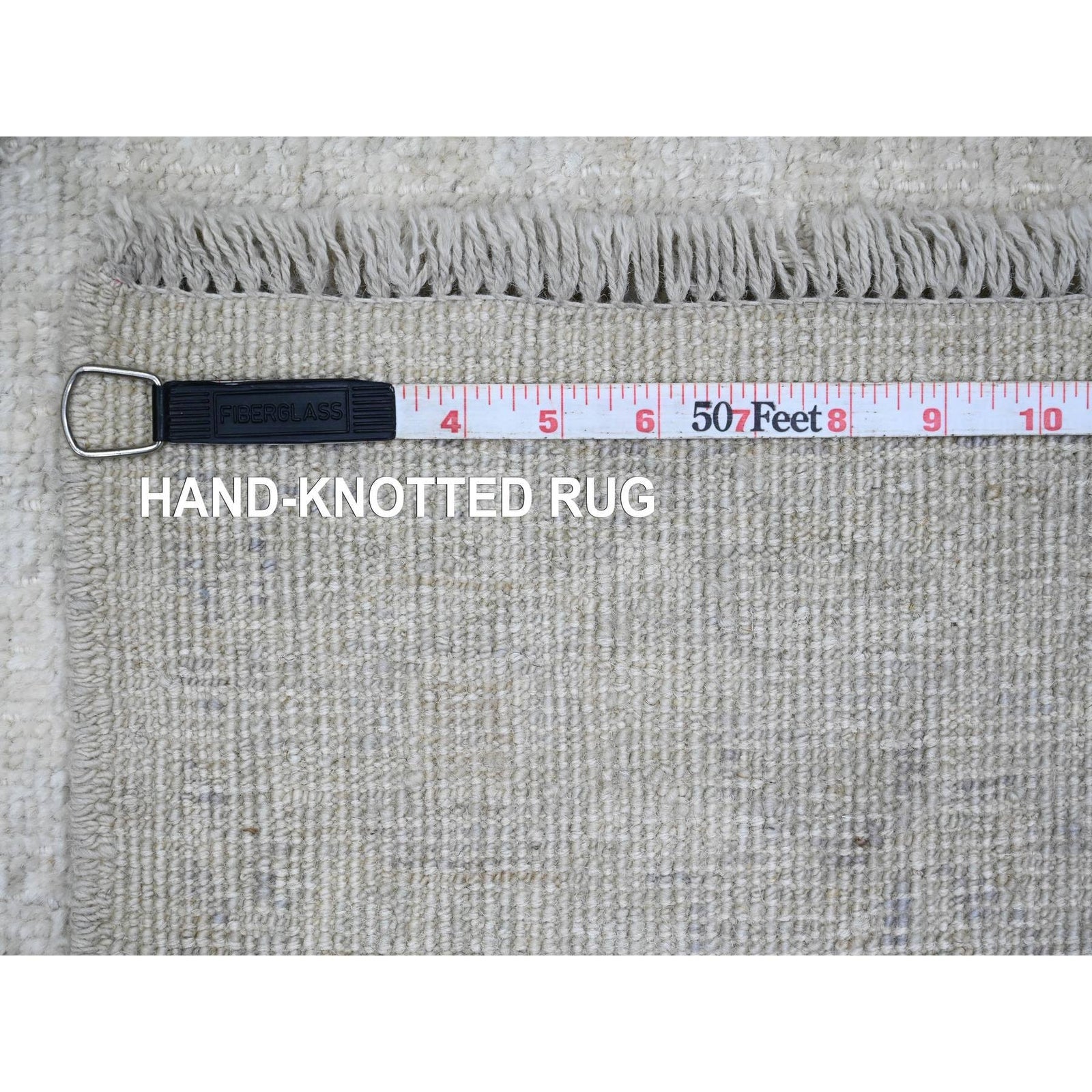 4'1"X19'8" White Afghan Angora Leaf Design Hand Knotted Wool Runner Rug