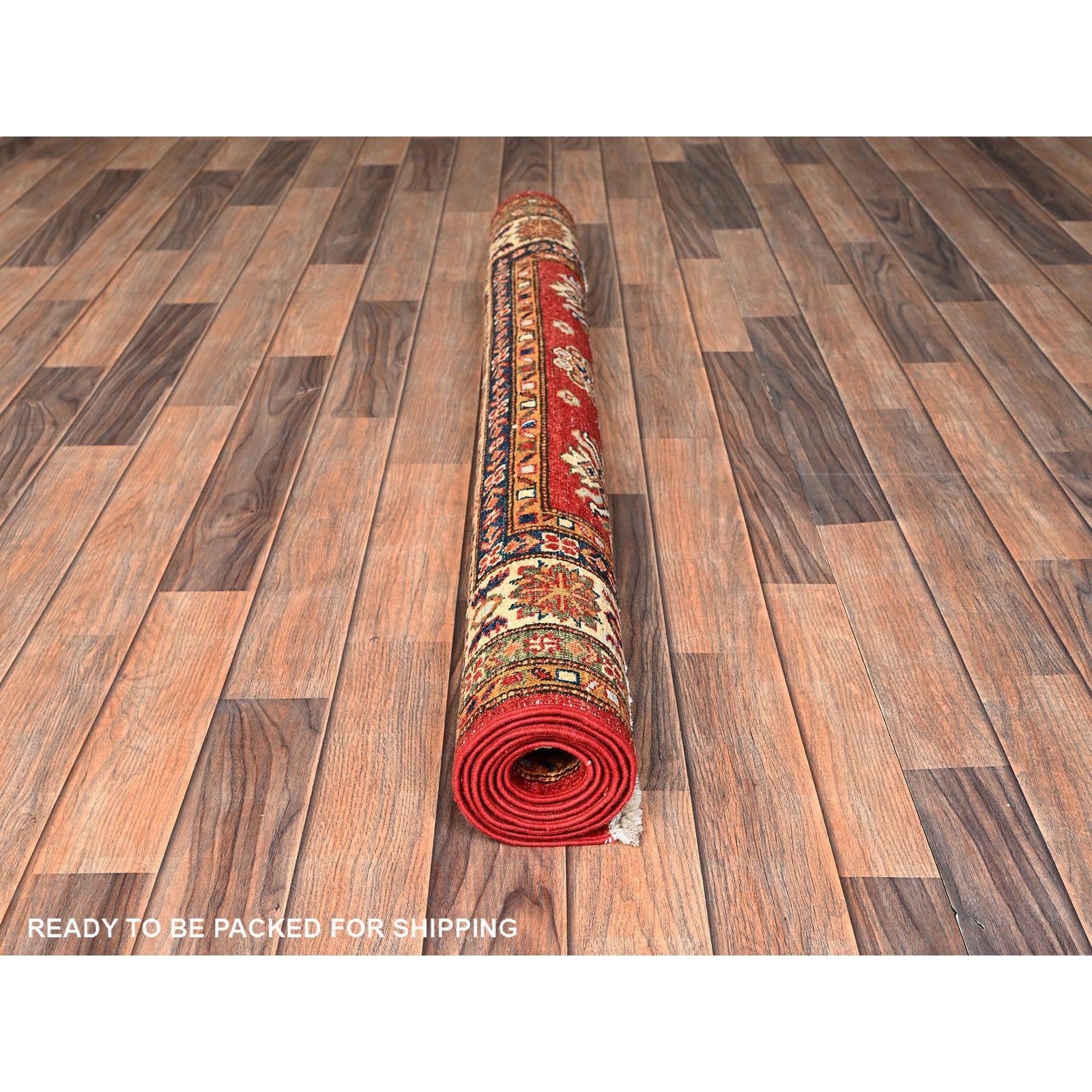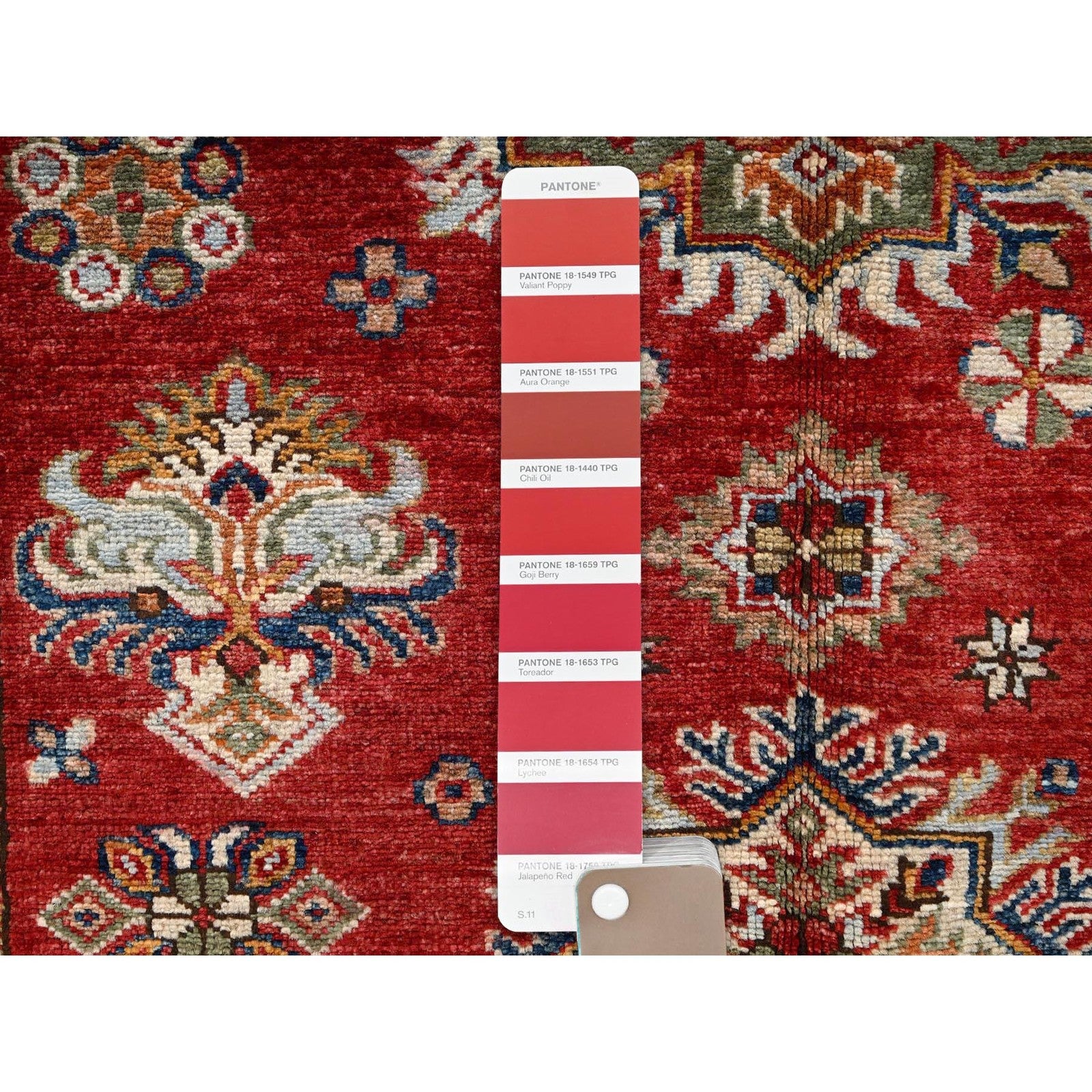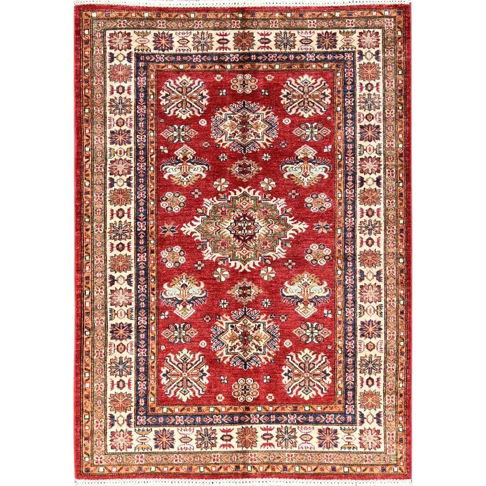 4'3"X6' Red Afghan Super Kazak Medallions Design Hand Knotted Wool Rug
