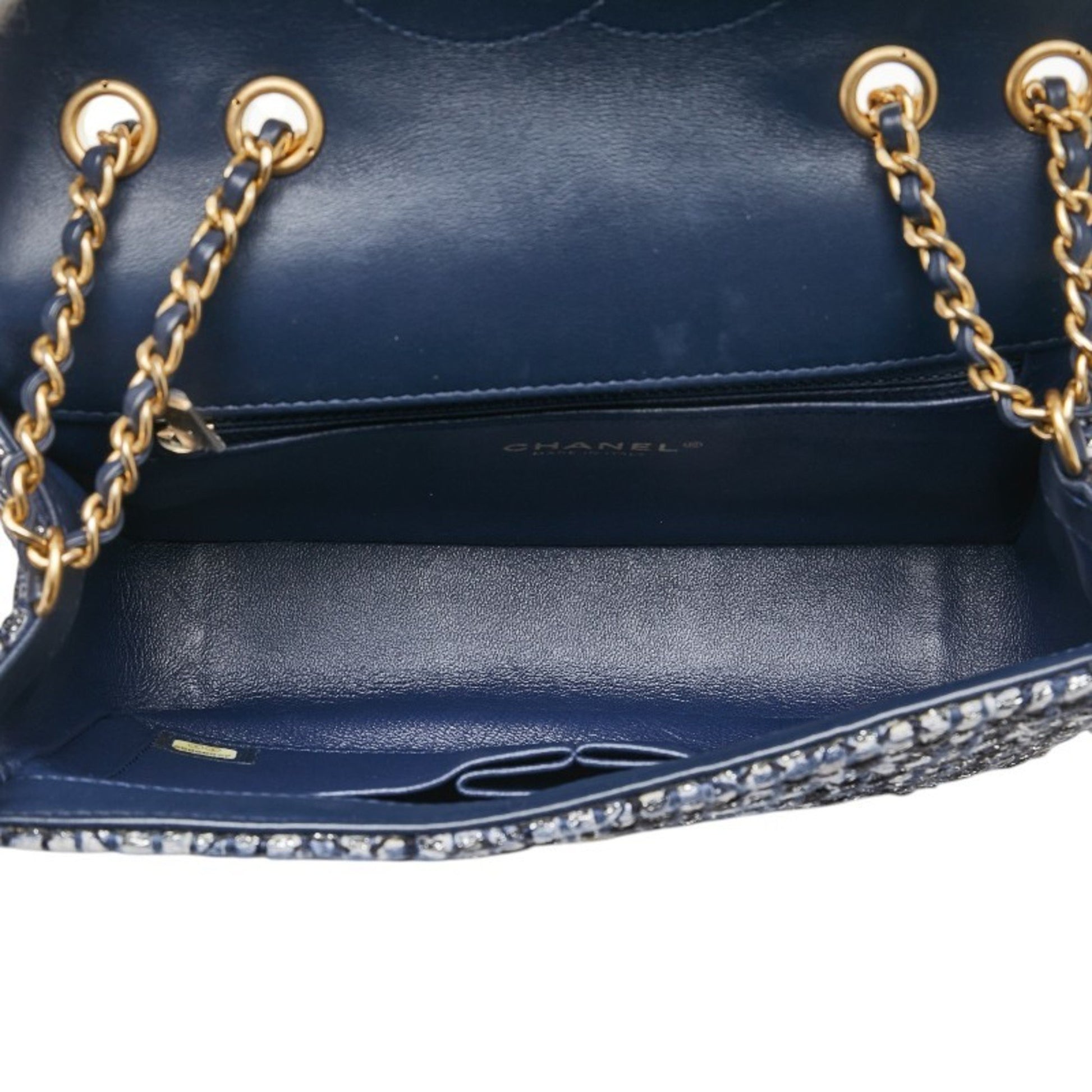 Chanel Cc Filigree Coco Mark Python Embossed Chain Shoulder Bag In Navy Tweed
