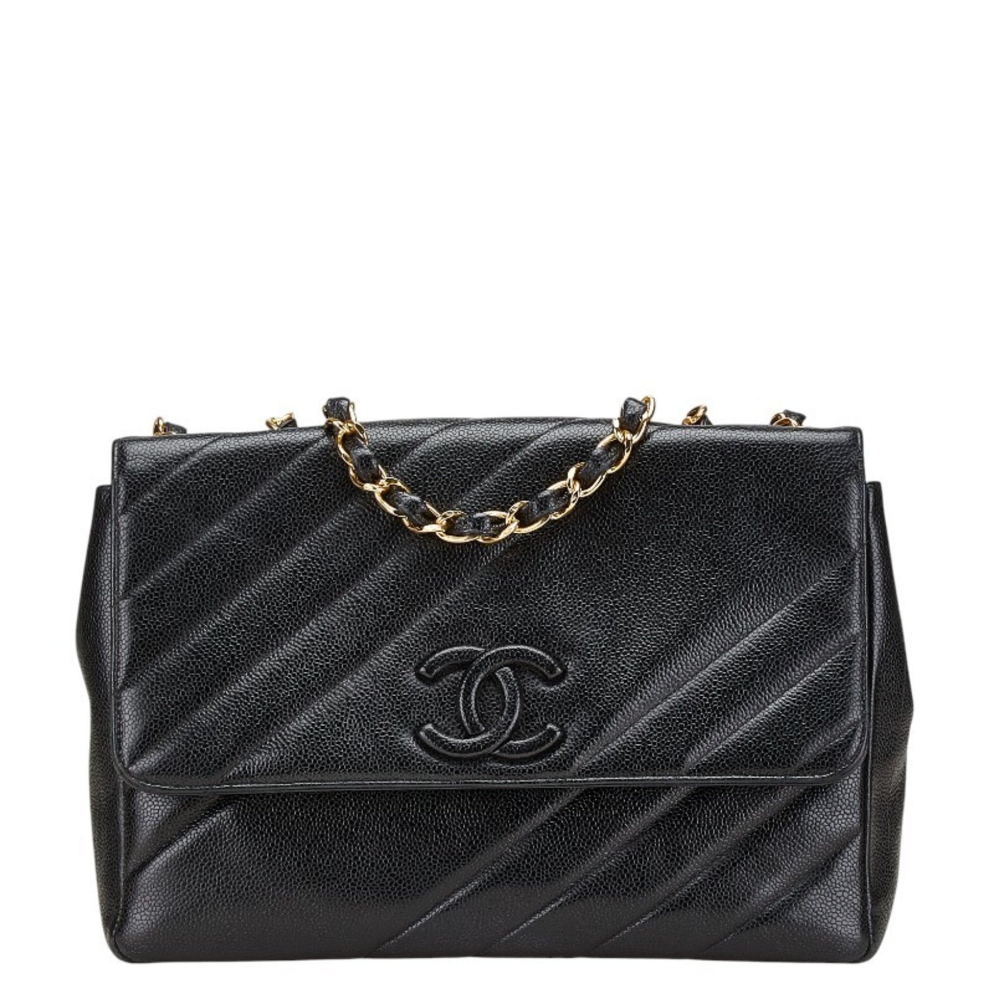 Chanel Coco Mark Bias Stitch Chain Shoulder Bag In Black Caviar Leather