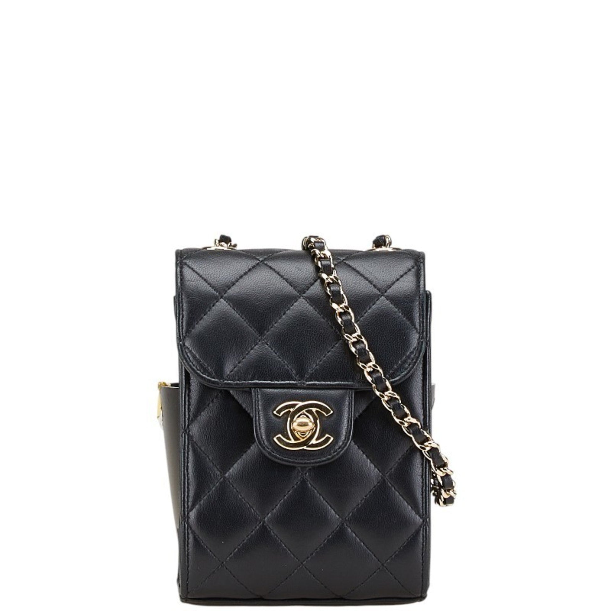 Chanel Matelasse Coco Mark Crossbody Chain Shoulder Bag In Black Lambskin