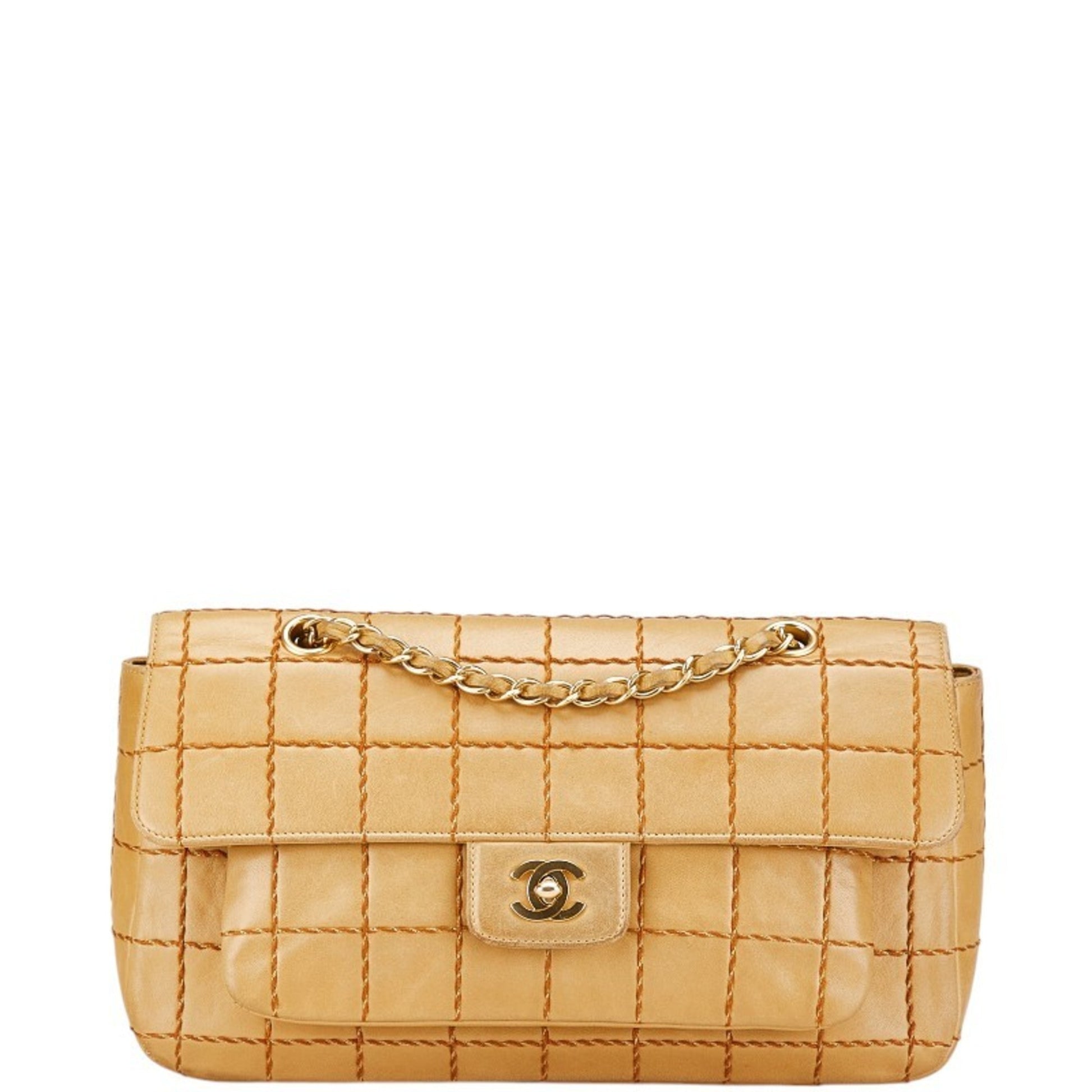Chanel Wild Stitch Chocolate Bar Chain Shoulder Bag In Beige Lambskin