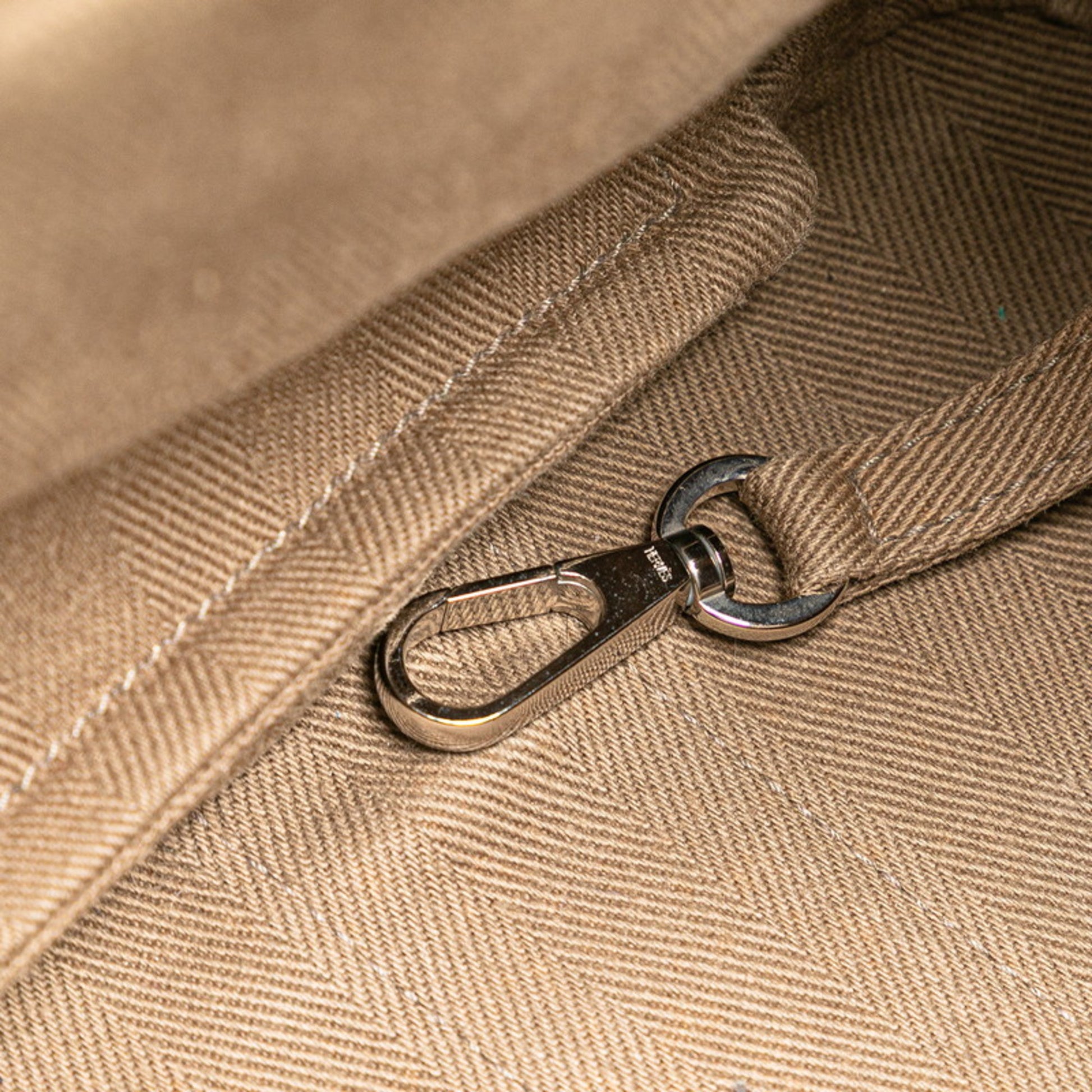 Hermes Herms Valparaiso Pm Handbag In Etoupe Greige Toile Chevron Swift
