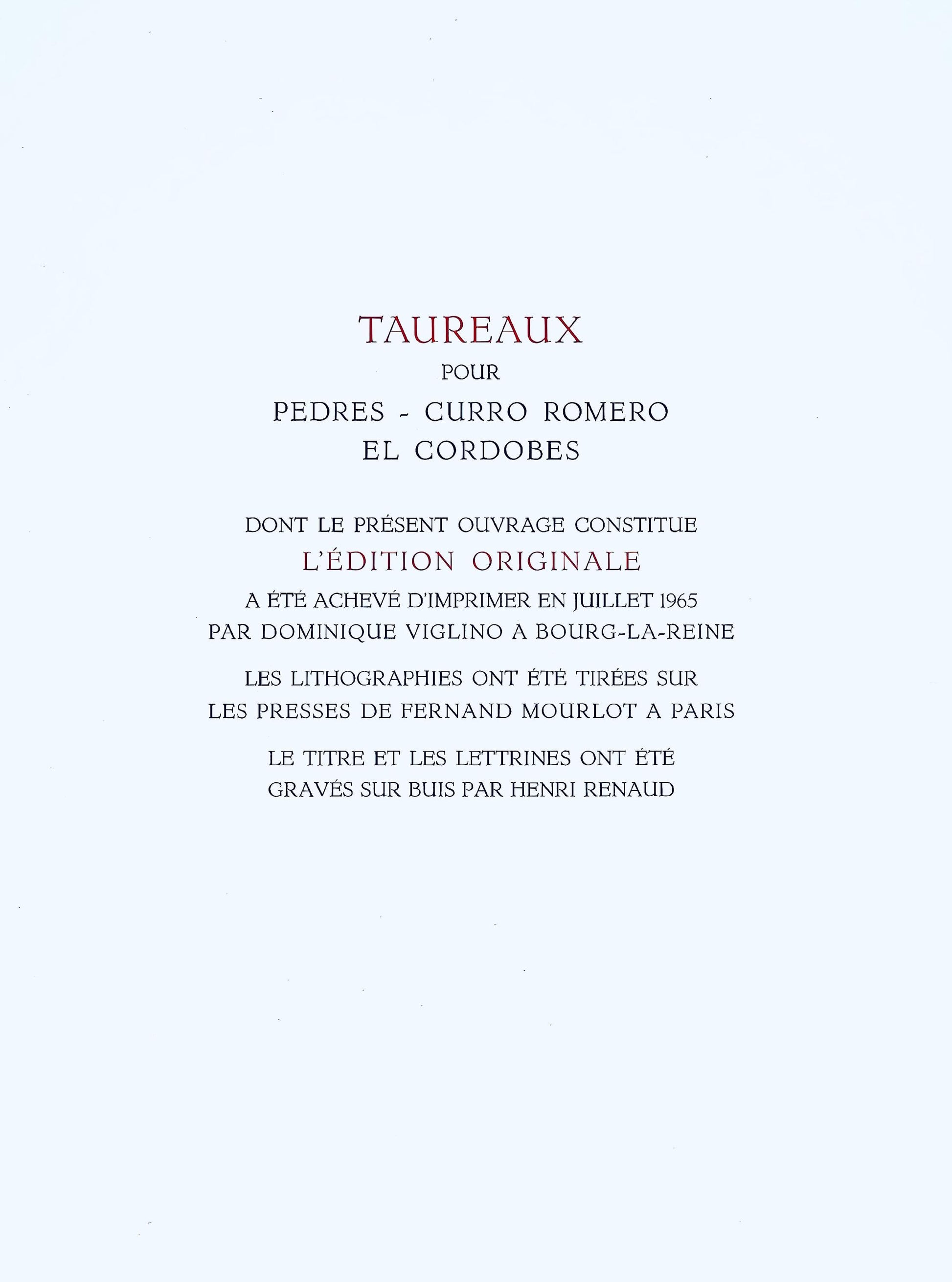 Excerpted from the folio (translated from French), Taureaux pour Pedres, Curro Romero el Cordobes, of which this album constitutes the original edition.