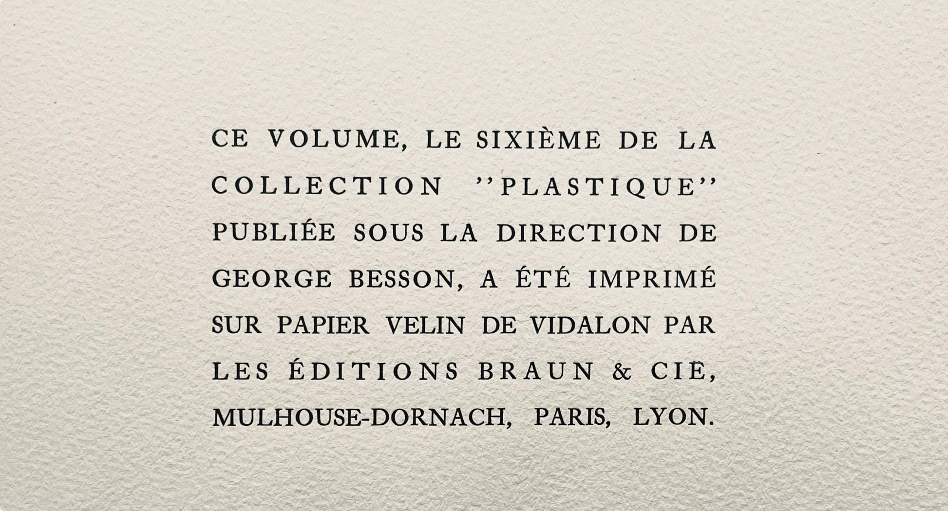 Published by George Besson, Paris; printed by Les ditions Braun & Cie, Mulhouse-Dornach, Paris, Lyon.