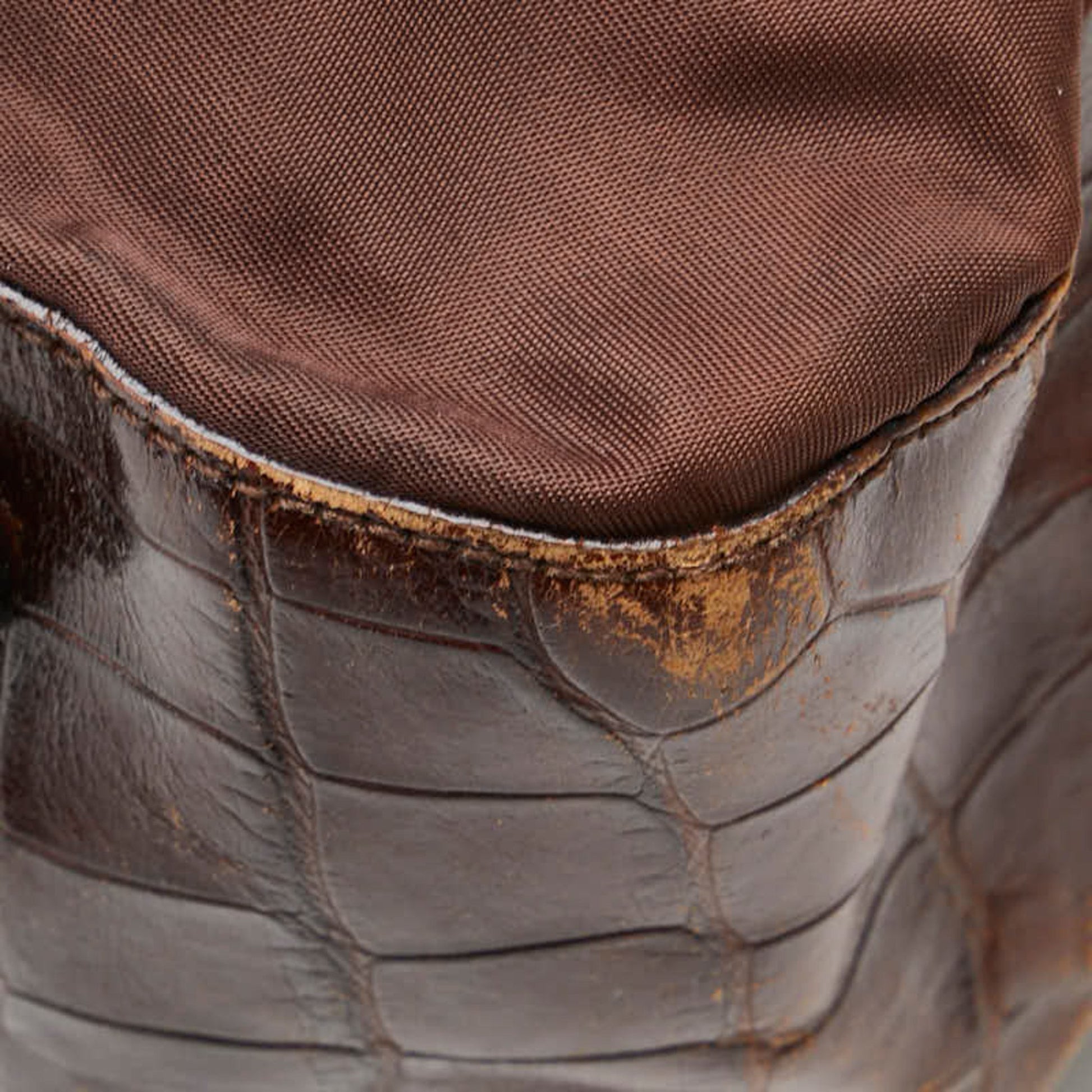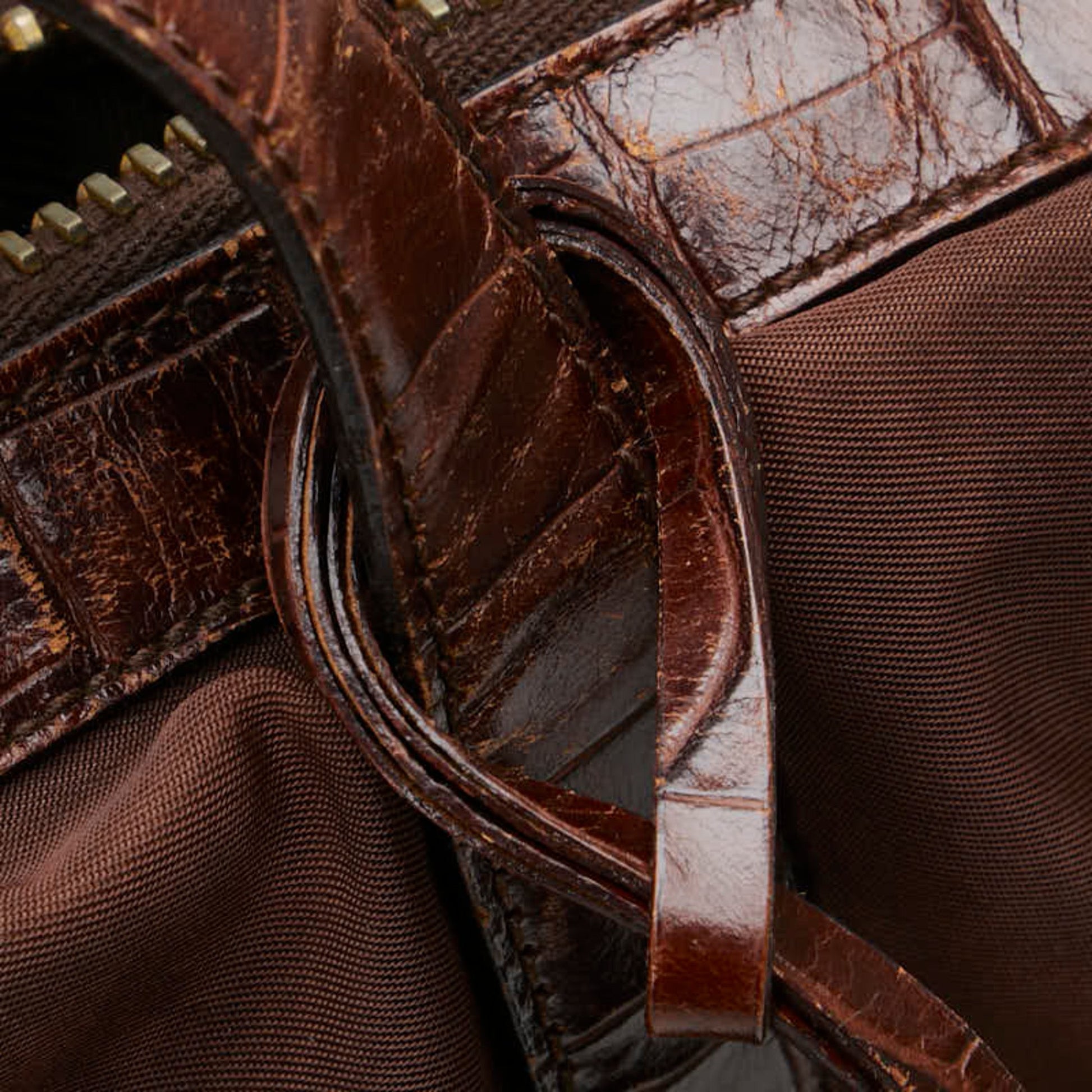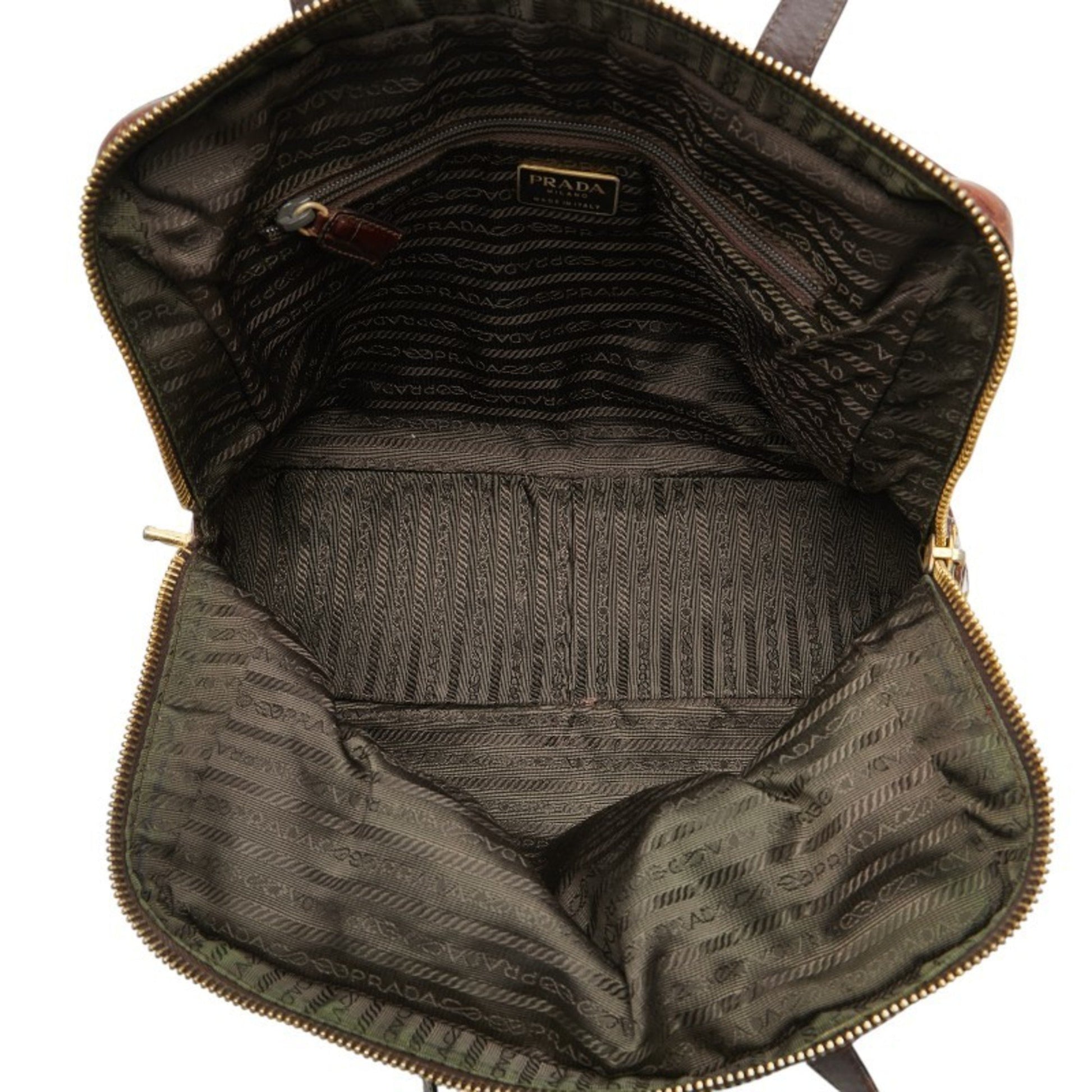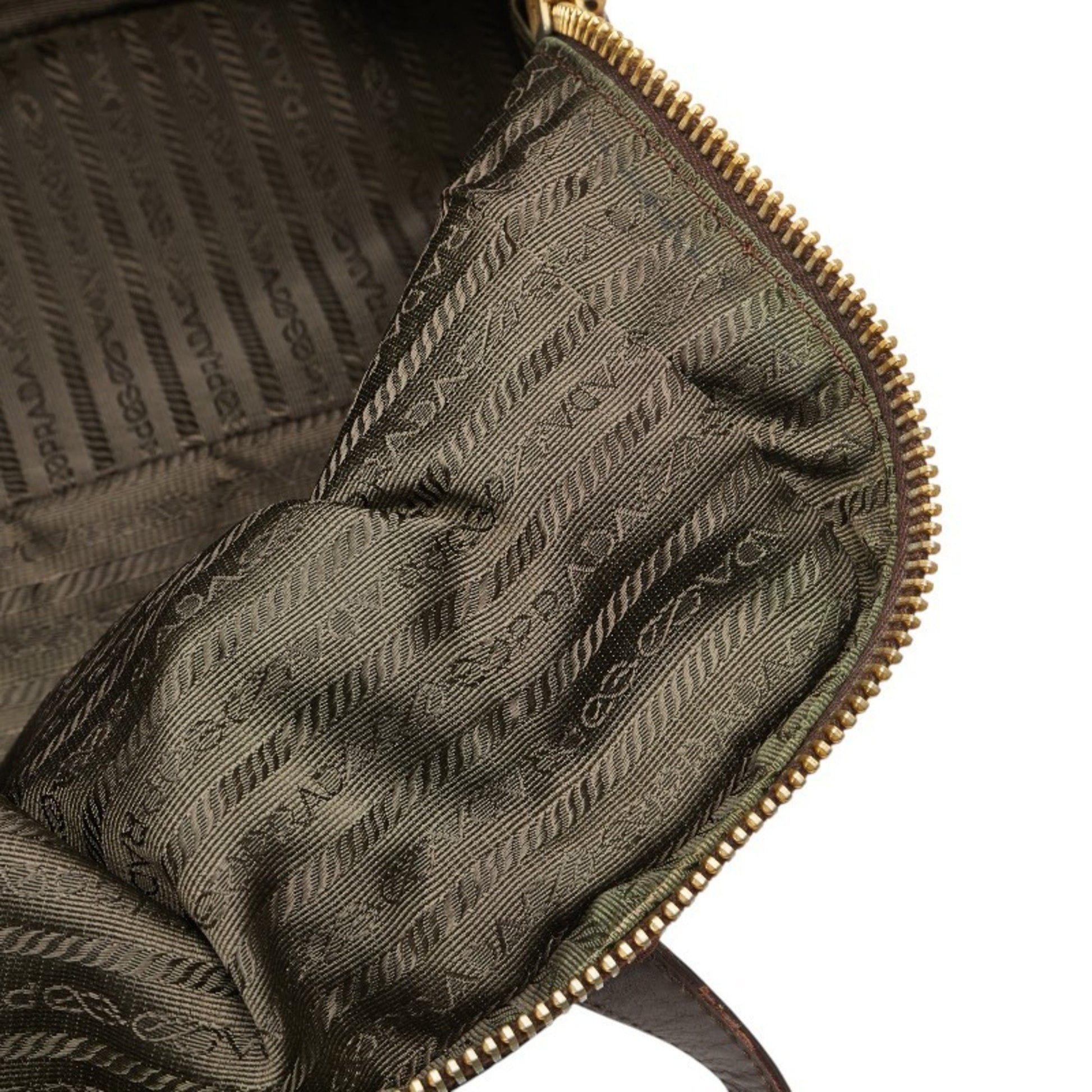 Prada Triangle Logo Plate Handbag Shoulder Bag Brown Nylon Leather
