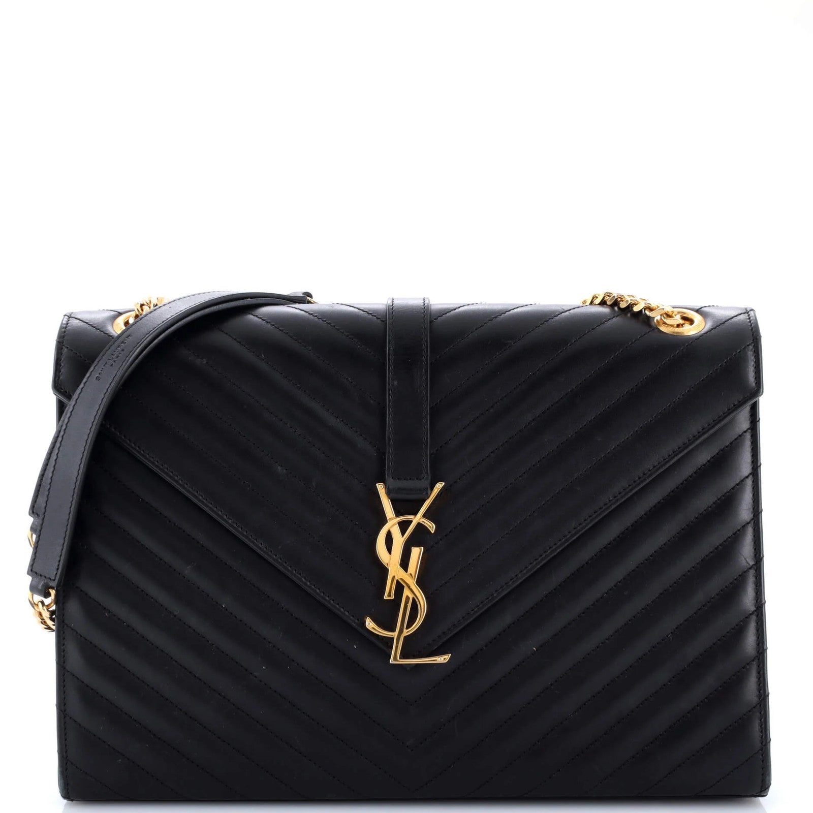 Saint Laurent Classic Monogram Envelope Satchel Matelasse Chevron Leather Large