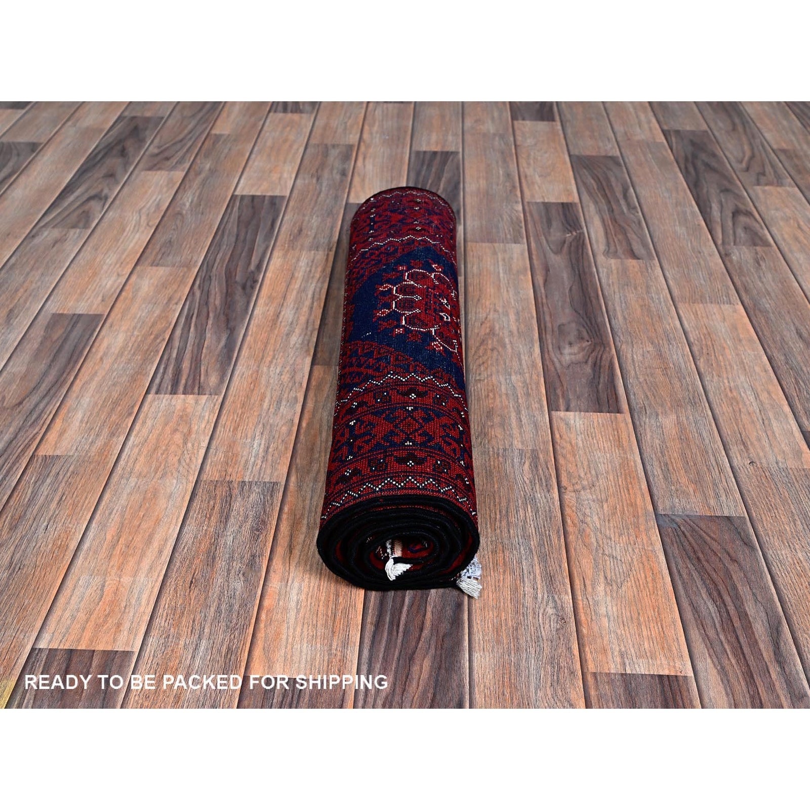 2'2"X4' Red Hand Knotted Afghan Khamyab Tribal Design Pure Wool Sample Rug