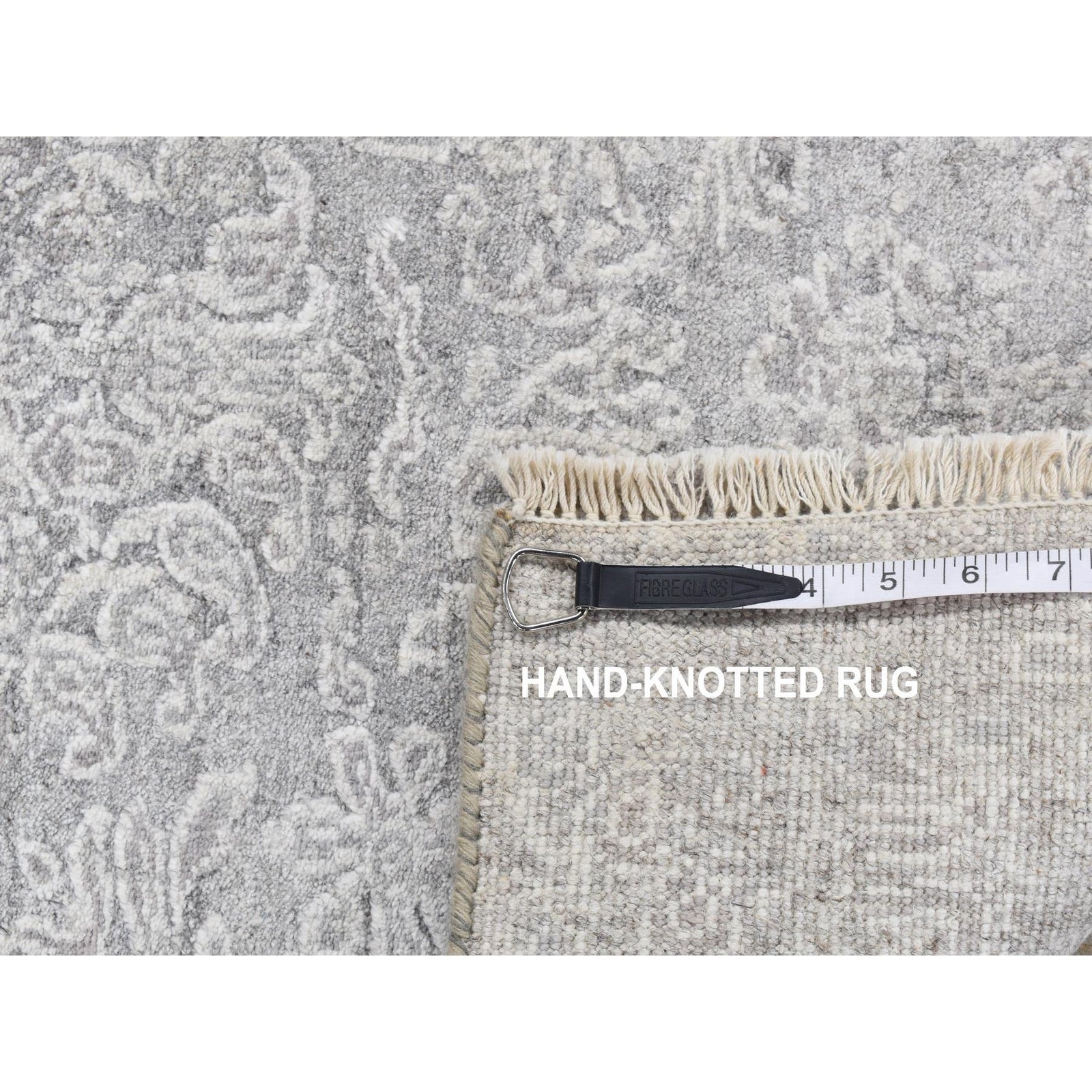2'5"X7'9" Gray Hand Knotted Tone On Tone Design Wool And Silk Runner Rug