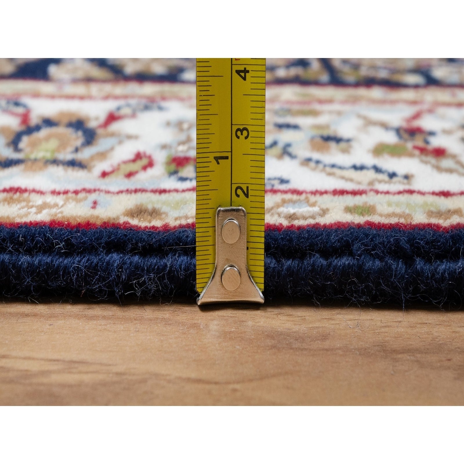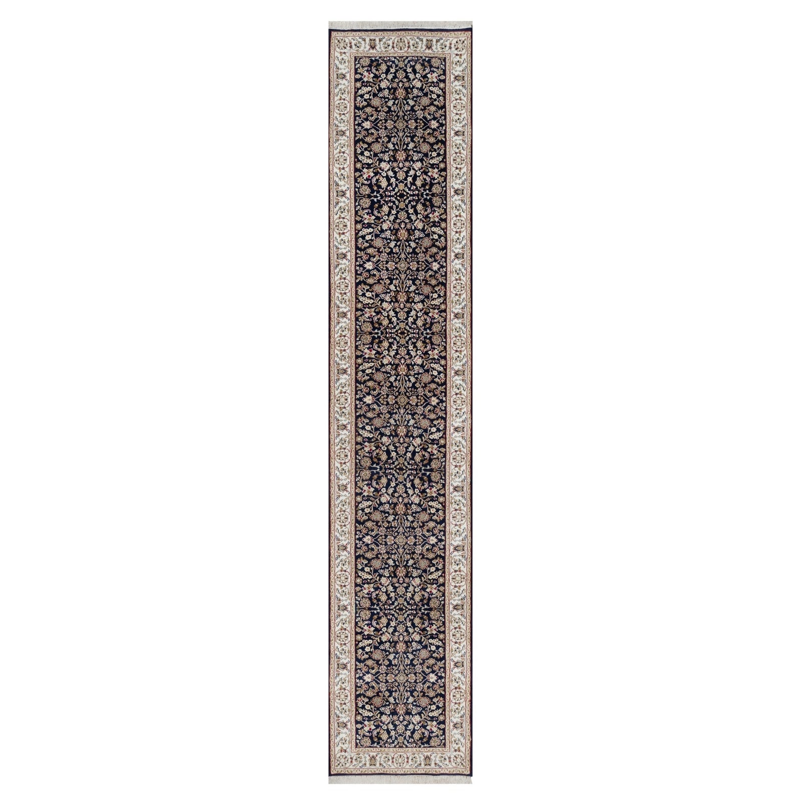 2'6"X13'3" Blue Nain Flower Design Wool And Silk Hand Knotted Runner Rug
