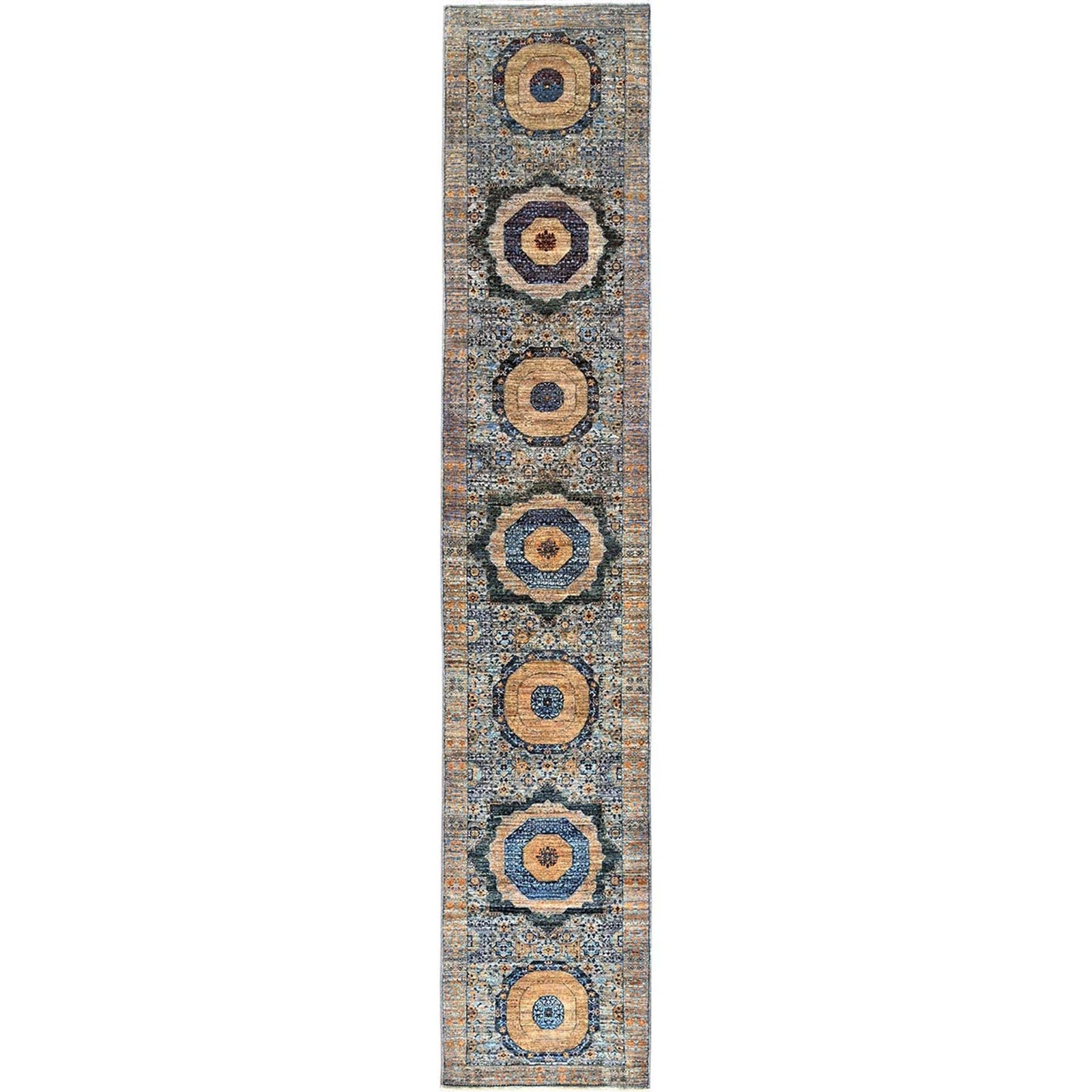 2'6"X13'9" Blue Mamluk Design Soft Wool Hand Knotted Runner Oriental Rug