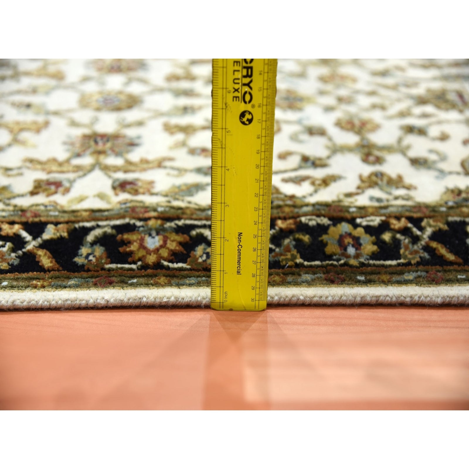 2'6"X8'2" Ivory Wool And Silk Hand Knotted Rajasthan Design Runner Rug