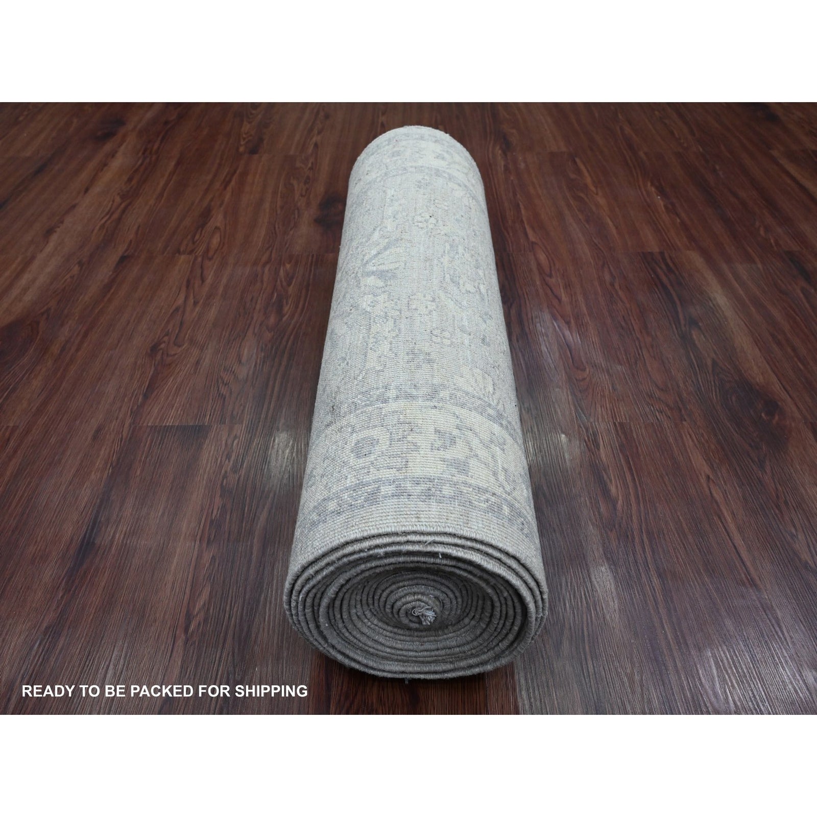 2'7"X23'8" Misty Gray Peshawar Heris Design Wool Hand Knotted Runner Rug