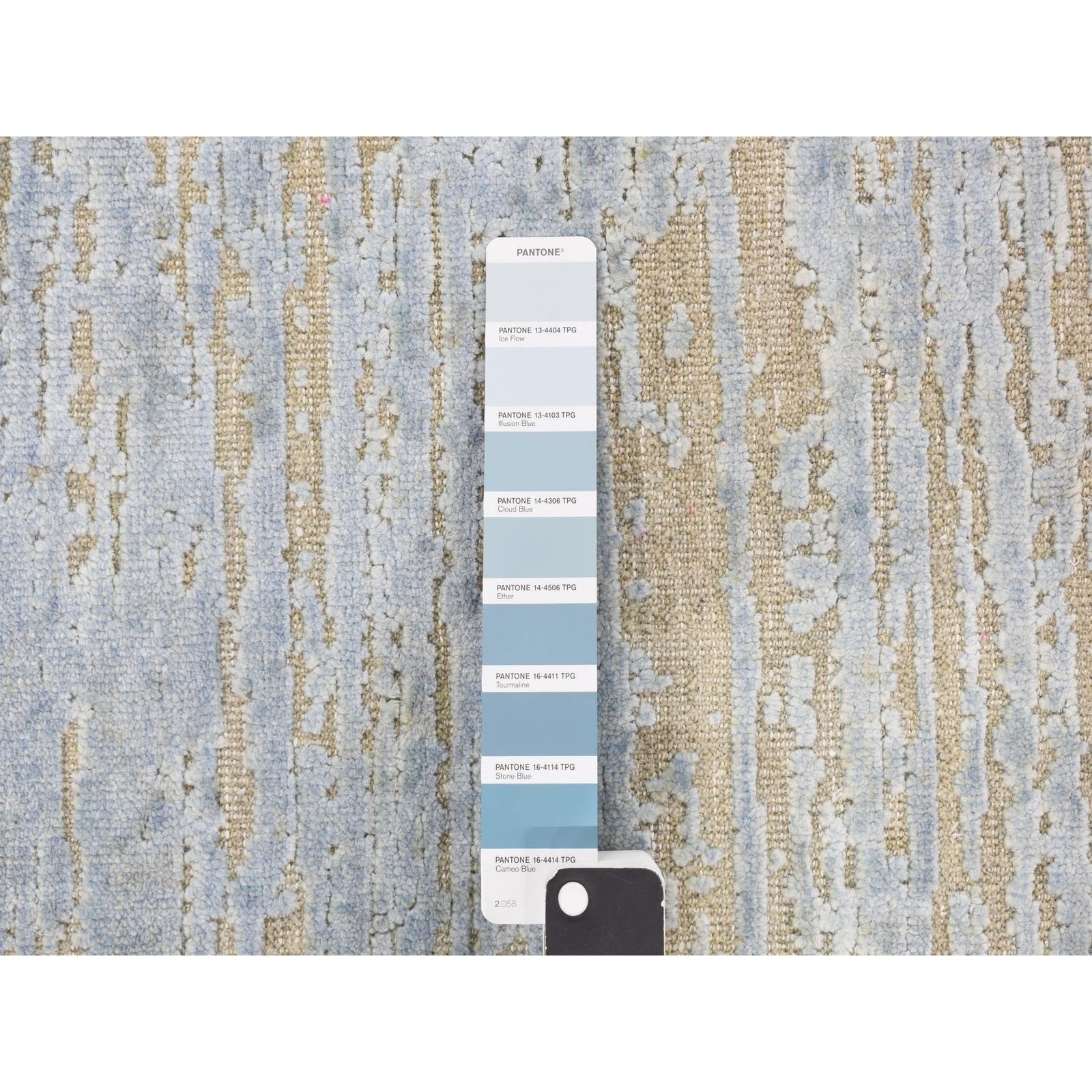 2'X3' Blue Wool And Silk Modern Line Design Hand Knotted Sample Mat Rug