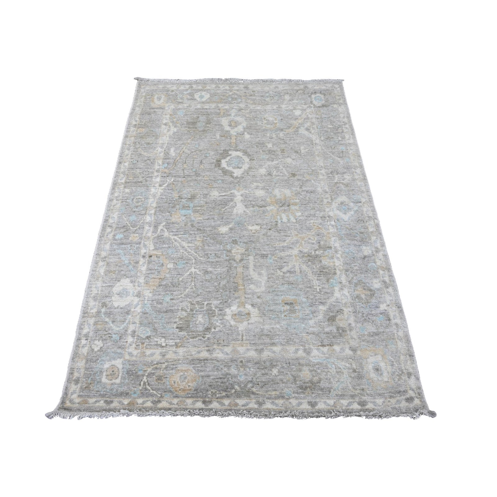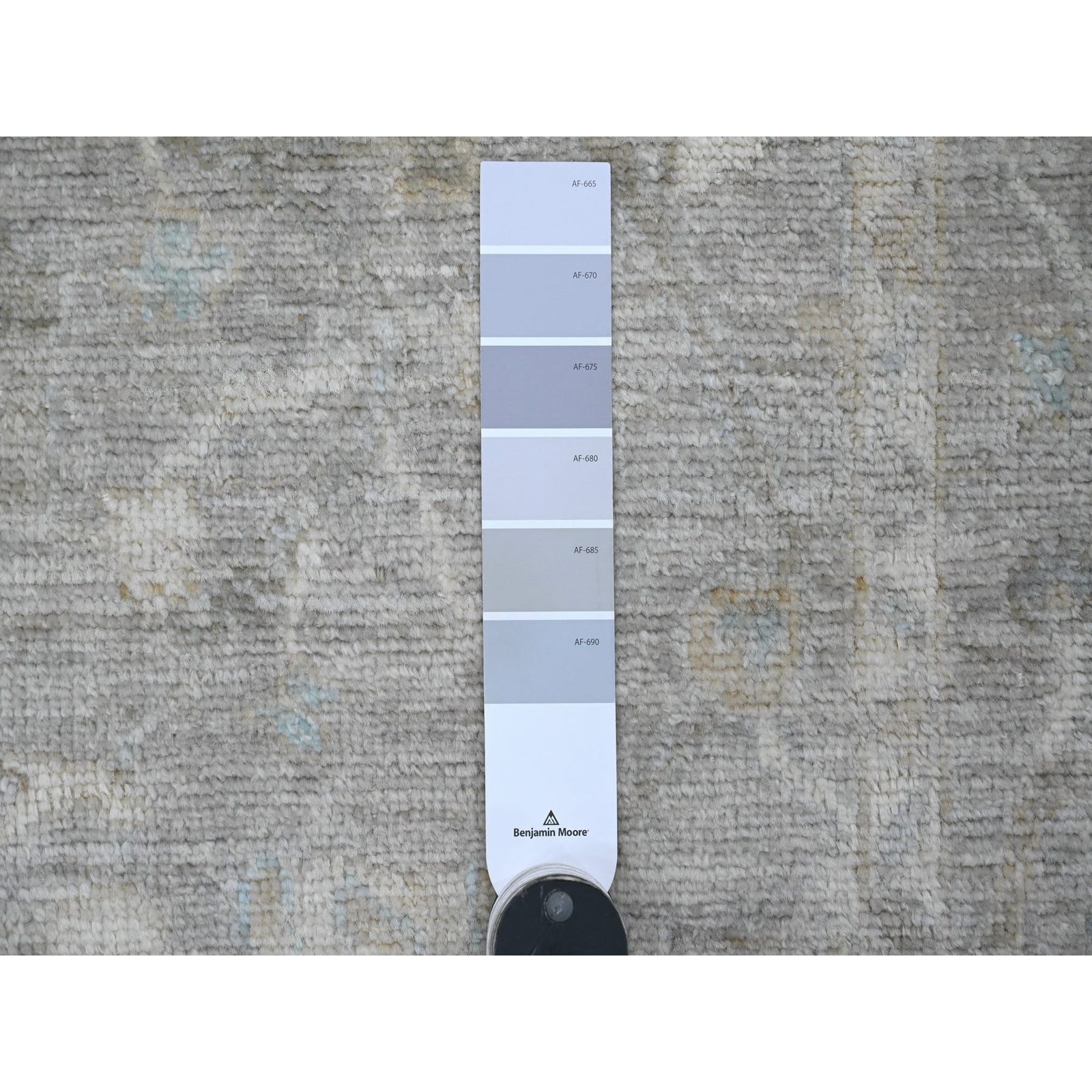 4'1"X5'10" Fossil Gray Hand Knotted Afghan Angora Oushak 100% Wool Rug