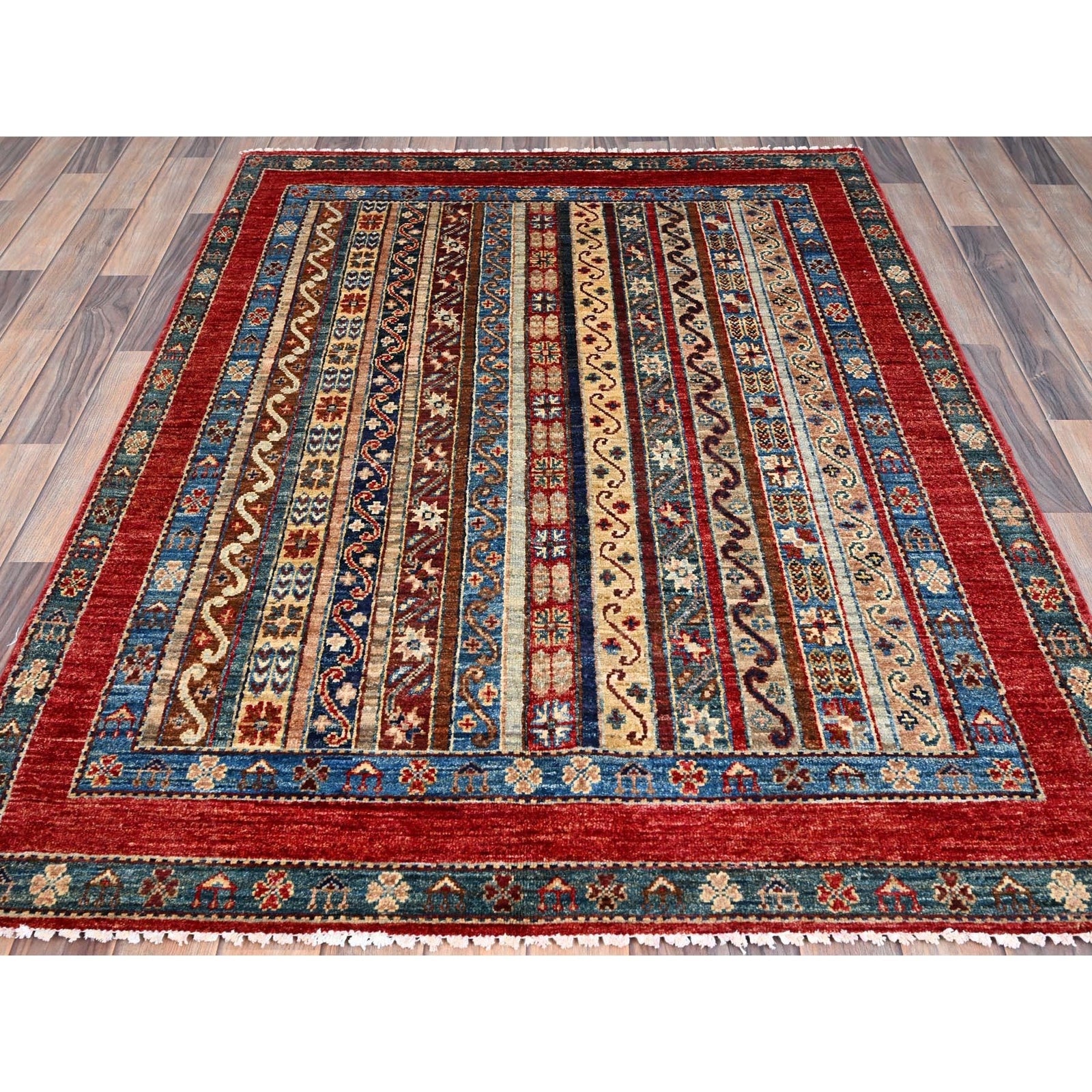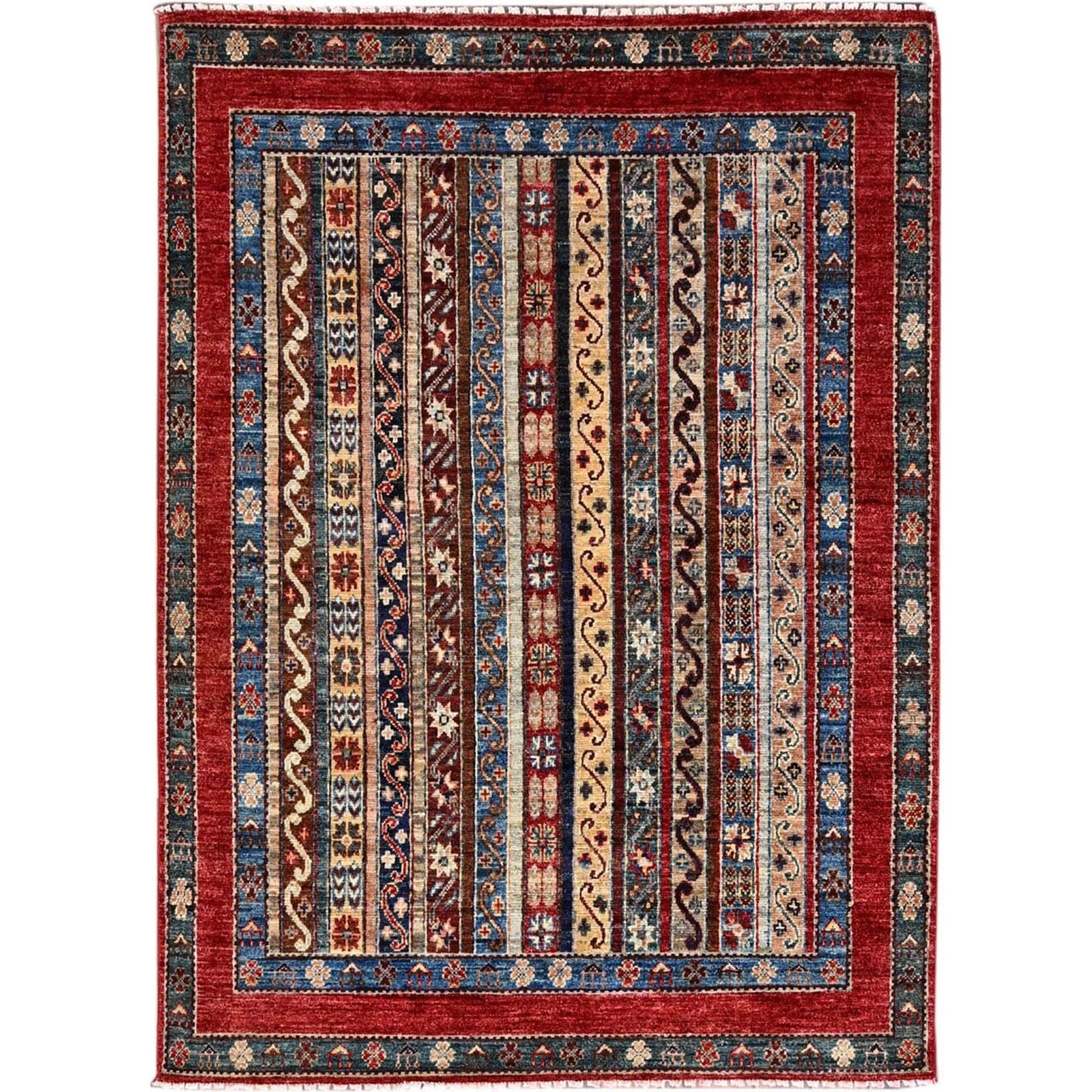 4'2"X5'9" Gilded Beige Super Kazak Shawl Design Wool Hand Knotted Rug