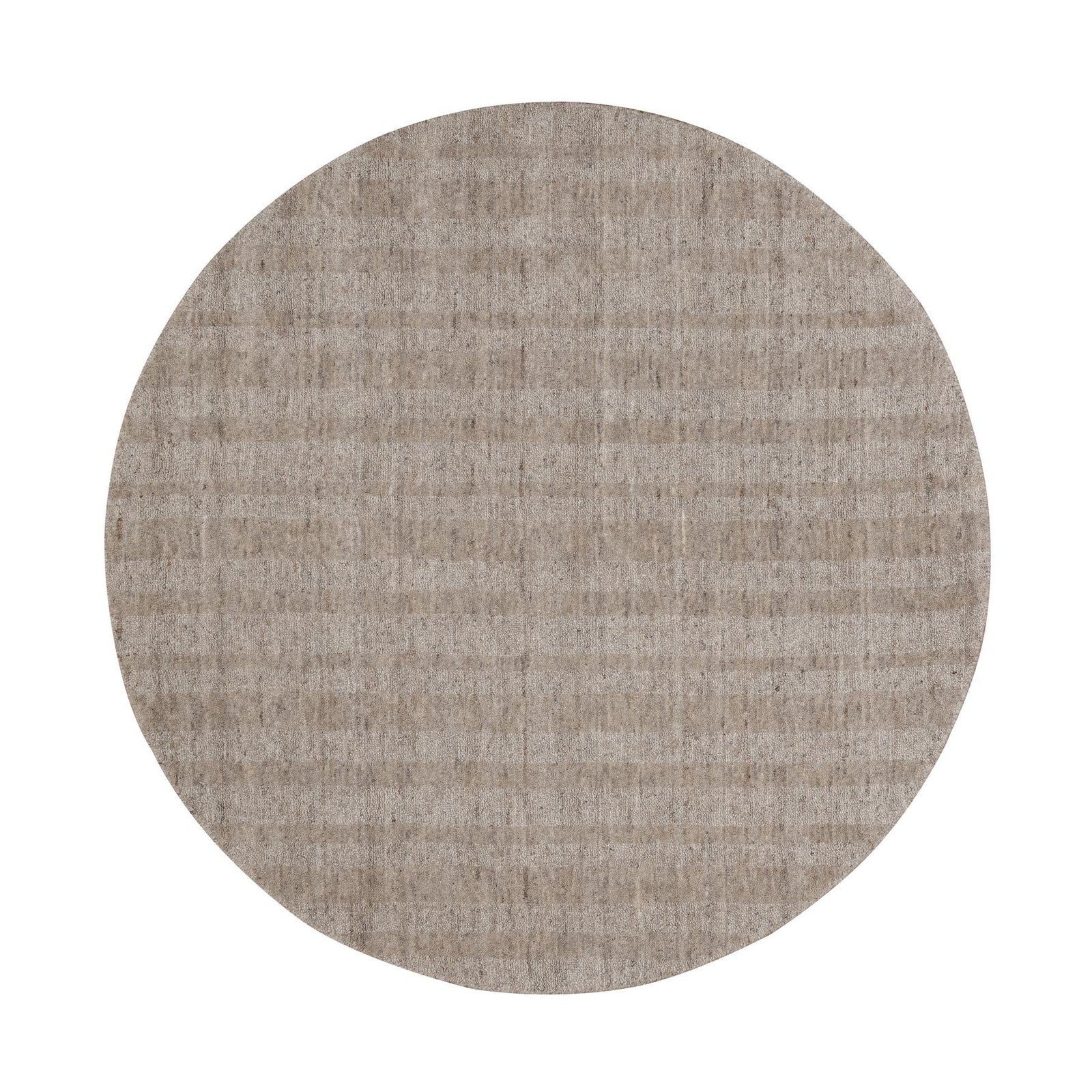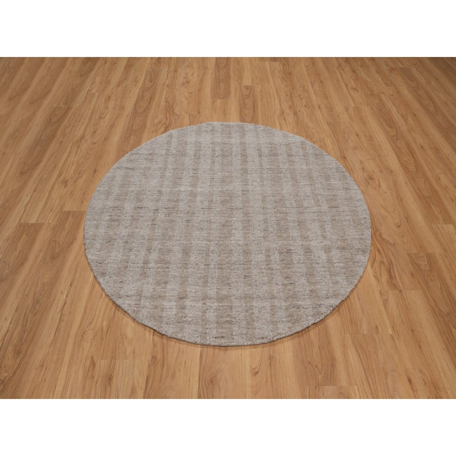 5'X5' Tan Brown Salt And Pepper Design Hand Loomed Natural Wool Round Rug