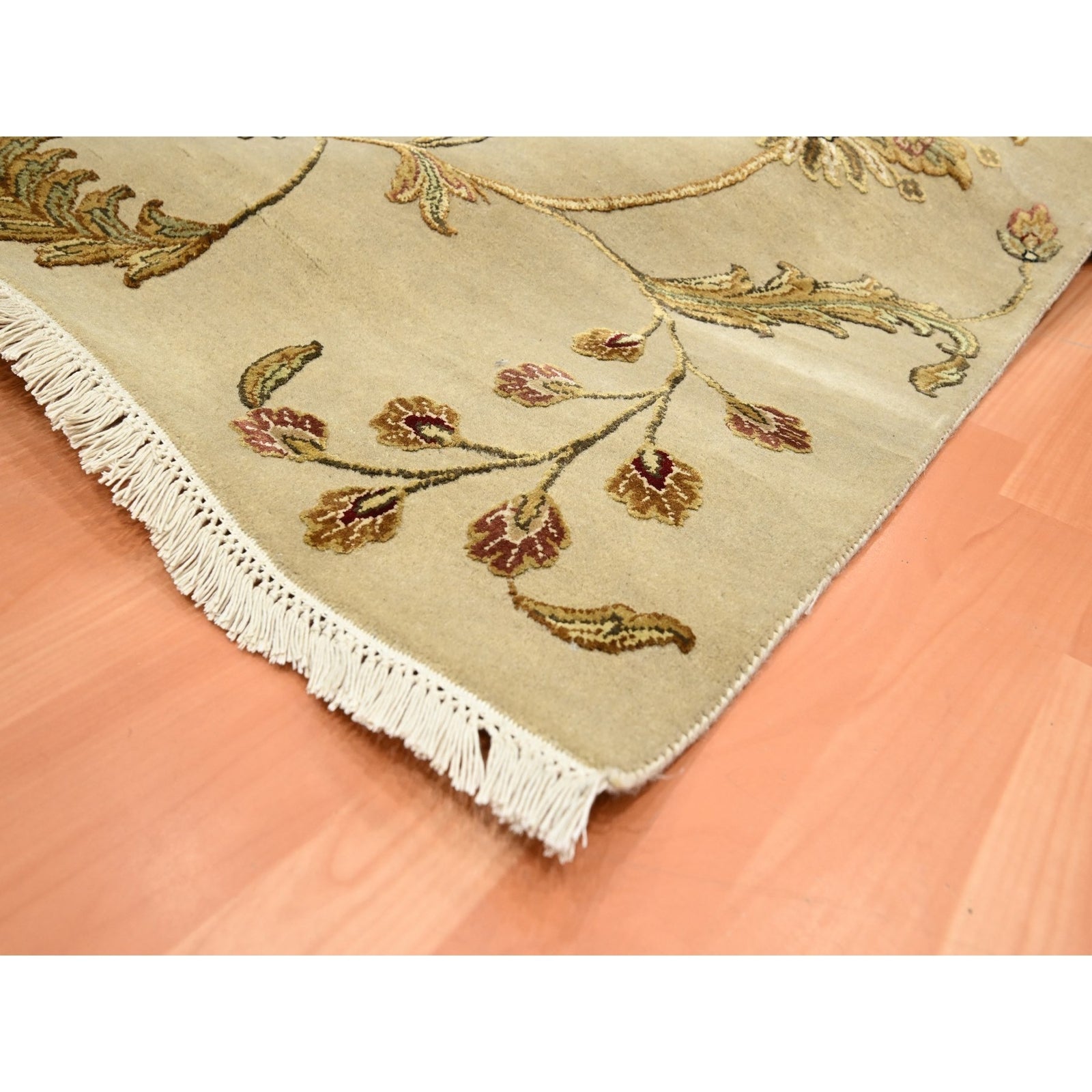 6'X8'10" Brown Hand Knotted Wool And Silk Botanical Design Oriental Rug
