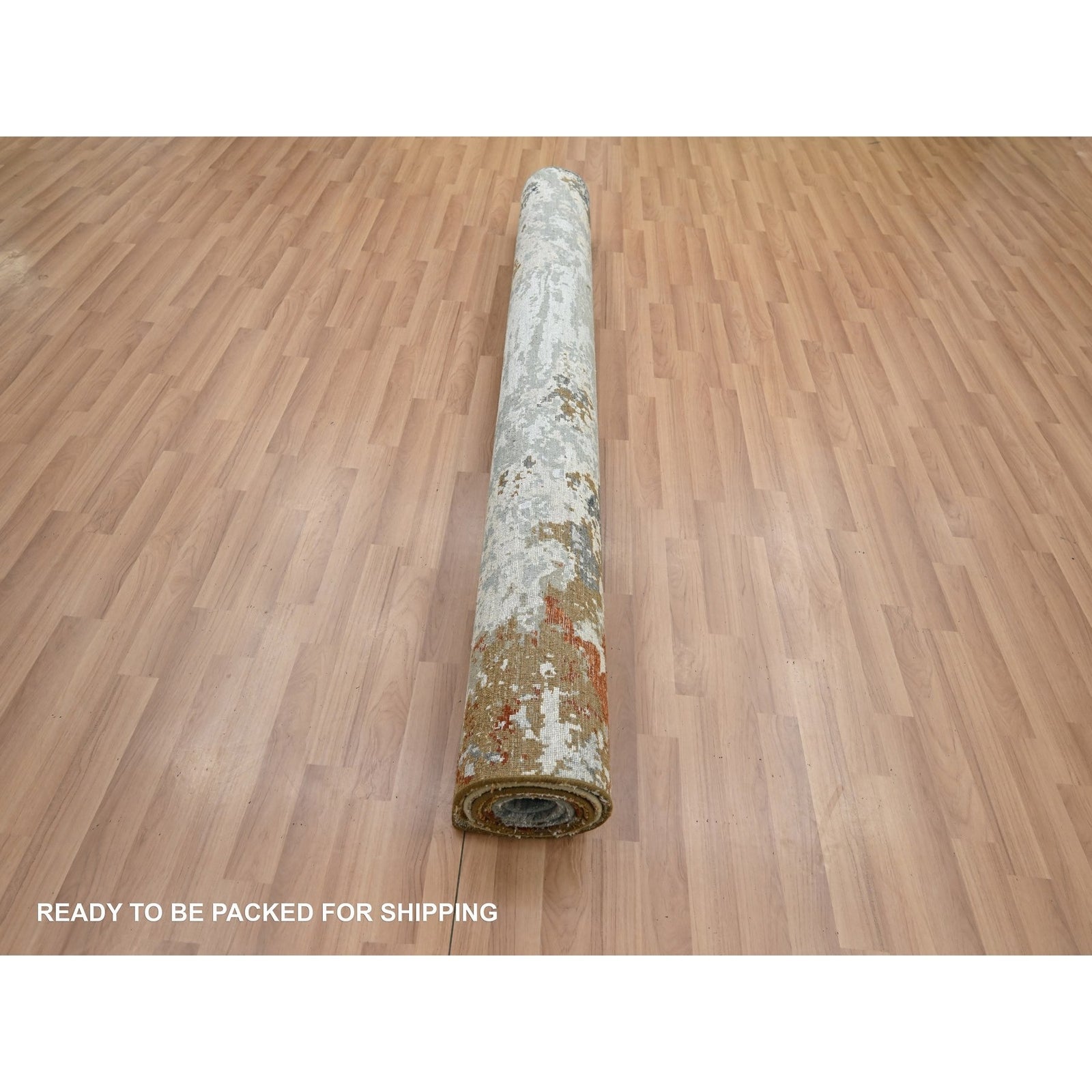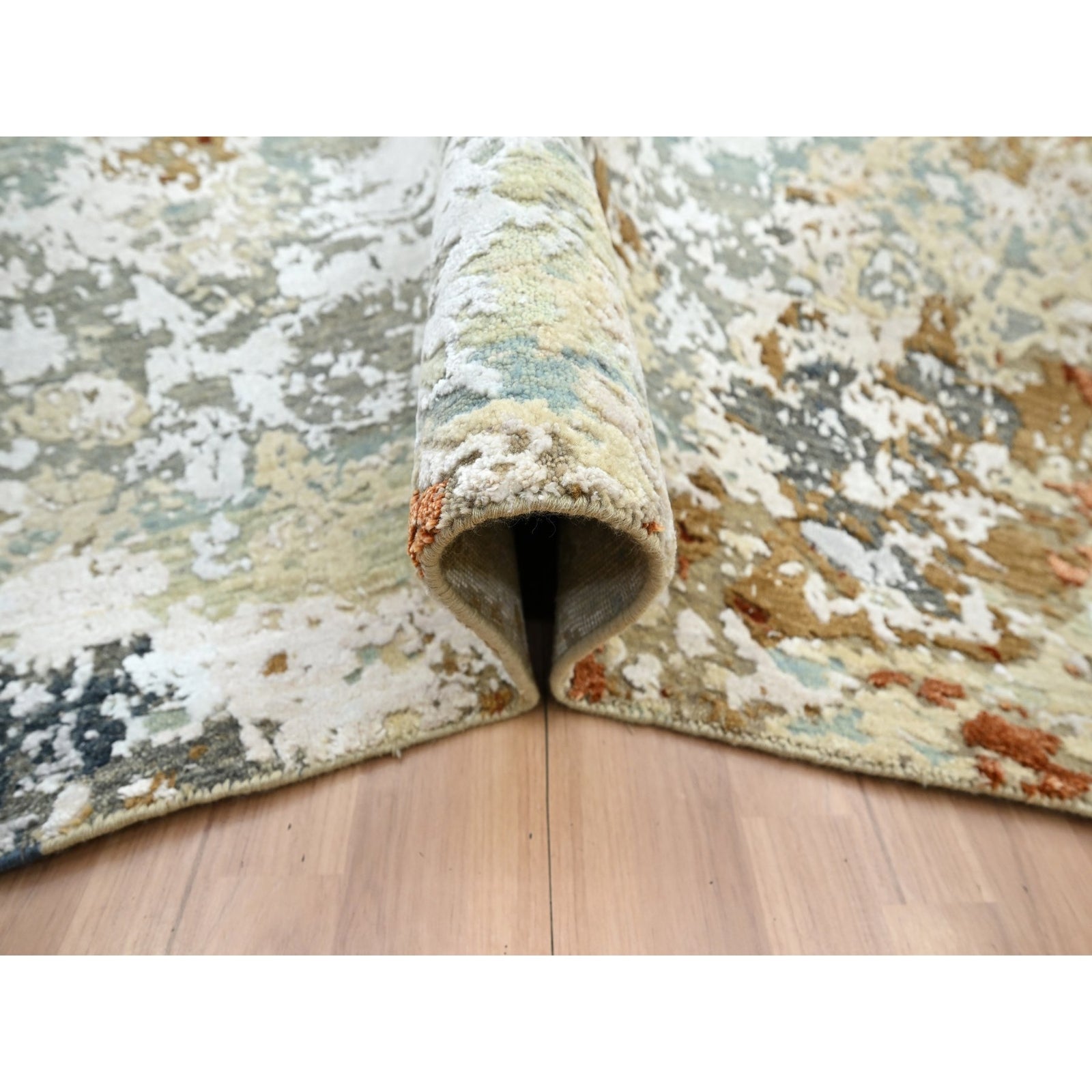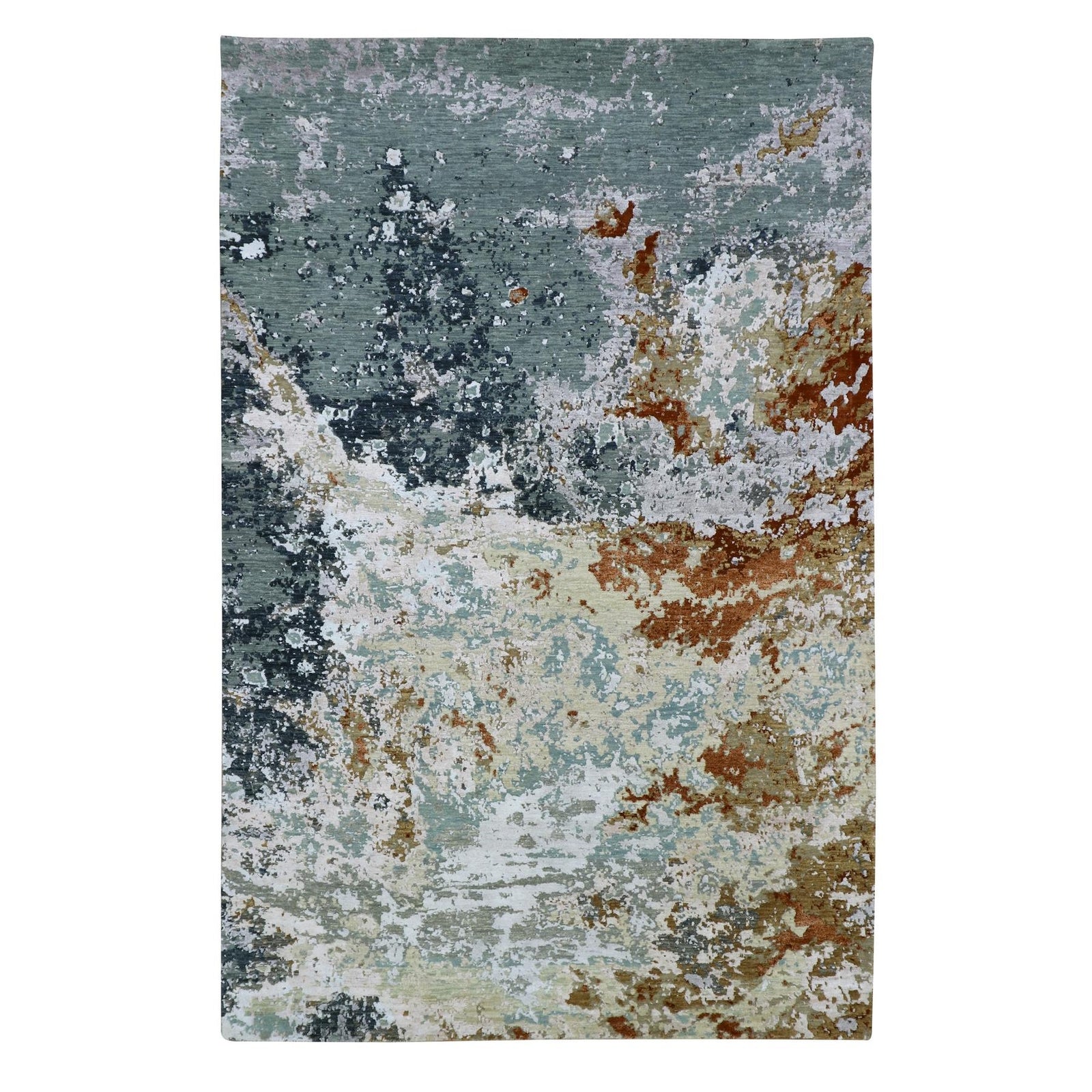 6'X9'3" Blue With Beige Abstract Galaxy Design Pure Wool Hand Knotted Rug