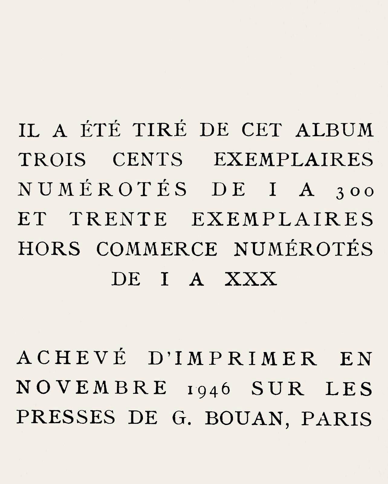 Finished printing in November 1946 on the presses of G. Bouan, Paris.